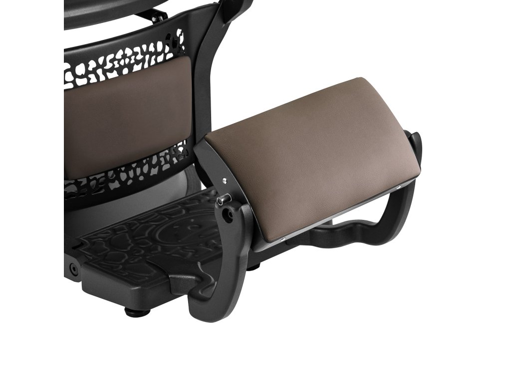 Apohodlné sedadlo s penovou výplňou zaručuje pohodlie klientov počas rôznych služieb. Tvarované operadlo umožňuje pohodlnú polohu a poskytuje vynikajúcu oporu chrbta,čo je dôležité najmä počas dlhších liečebných procedúr. Vybavenie stoličkymechanizmus úplného otáčania zefektívňuje a spríjemňuje prácu. Čalúnené podrúčky umiestnené v správnej výške zabezpečujú správnu polohu ramien klienta,zabrániť tomu, aby klient schovával hlavu do ramien alebo sa hrbil, čo výrazne uľahčuje presné ošetrenie. Stránkadržiak na uteráky pod lakťovou opierkou výrazne zvyšuje efektivitu práce. Stránkamedzera medzi operadlom a sedadlom uľahčuje udržiavanie čistoty v salóne, umožňuje efektívne odstraňovanie chĺpkov z každého kúta kresla a rýchlejšiu prípravu pracoviska pre ďalších klientov.