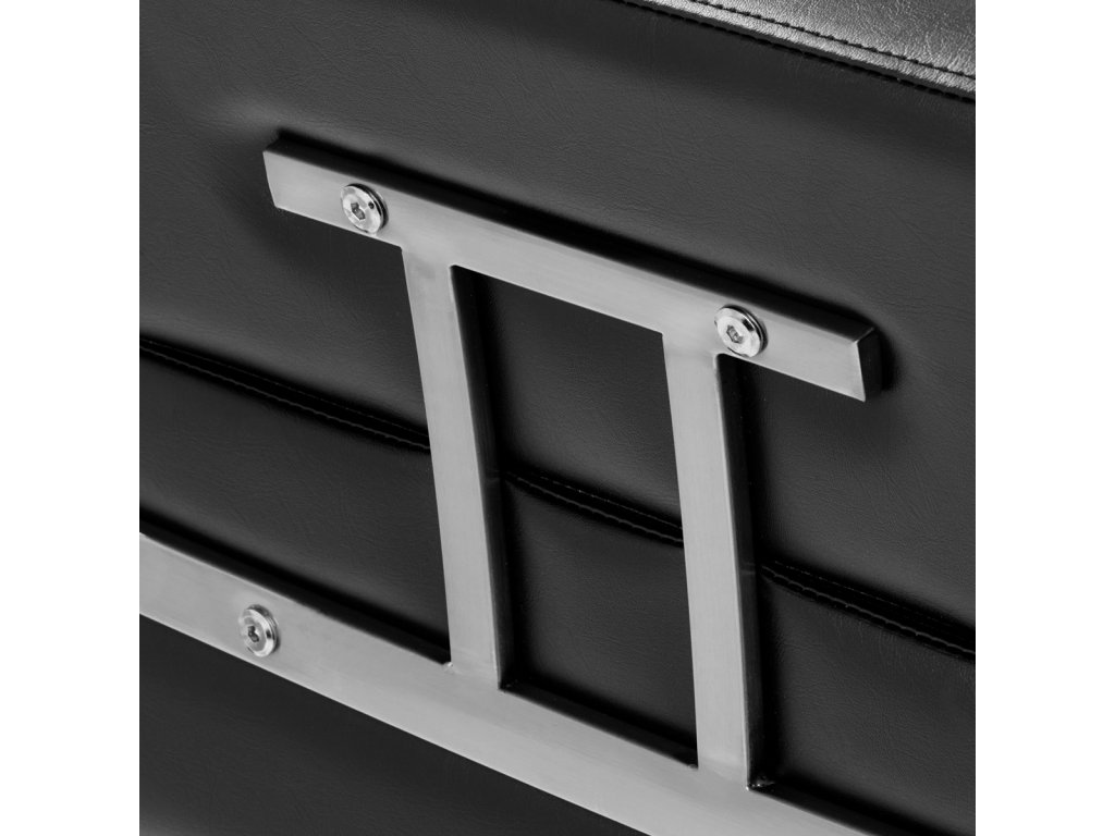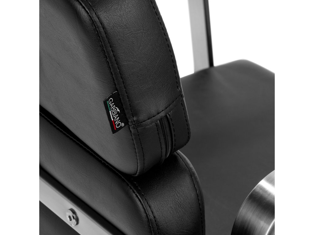 Výplň z odolnej peny odolnej voči deformácii a čalúnenie zo syntetickej kože príjemnej na dotykzabezpečiť trvanlivosť nábytku a jeho pohodlné používanie na dlhý čas. Vďaka tomu je zariadenieodolné voči vlhkosti, trvanlivé a ľahko sa čistia. Čierny poťah mu dodáva jedinečný charakter. Zariadenie jevyznačuje sa moderným dizajnom, vďaka čomu kreslo vyzerá skvele v mnohých profesionálnych salónoch.