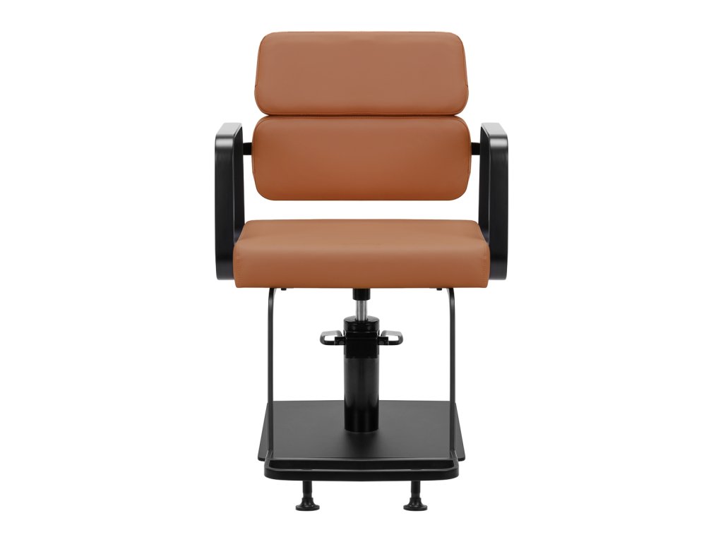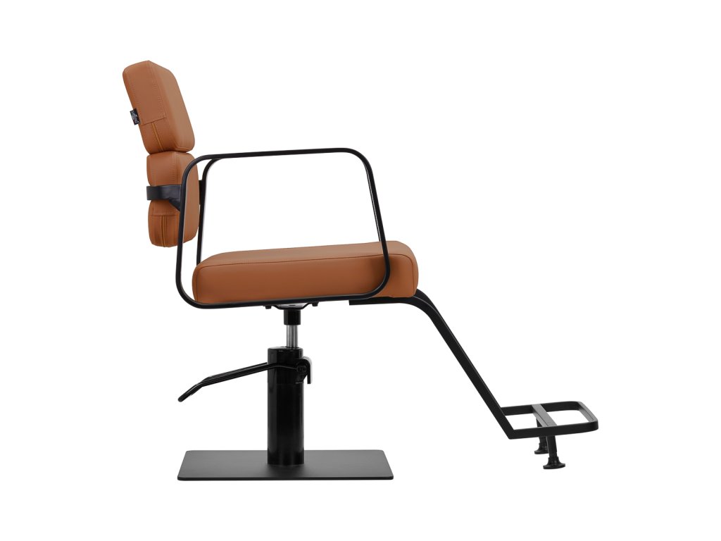 Mechanizmus úplného otáčania stoličky robí prácu kaderníkaefektívnejšie a pohodlnejšie. Pevná, plochá základňa štvorcového tvaruzaručuje stabilitu počas používania. Hladký povrch s matnou povrchovou úpravou dodáva prvku elegantný vzhľad a umožňuje ľahko sa udržiava v čistote. Pohodlné sedadlo s penovou výplňou zaručujevysoký komfort používania, a to aj počas mnohých hodín liečby. Geometrické kovové opierky rúk umožňujúsprávna poloha ramien klienta - to znamená, že nezakrýva hlavu do ramien a nehrbí sa - čouľahčuje presné ošetrenie, vrátane strihania vlasov. Štýlová opierka na nohy určená pre tento model poskytuje stabilnú oporu pre nohy používateľa.