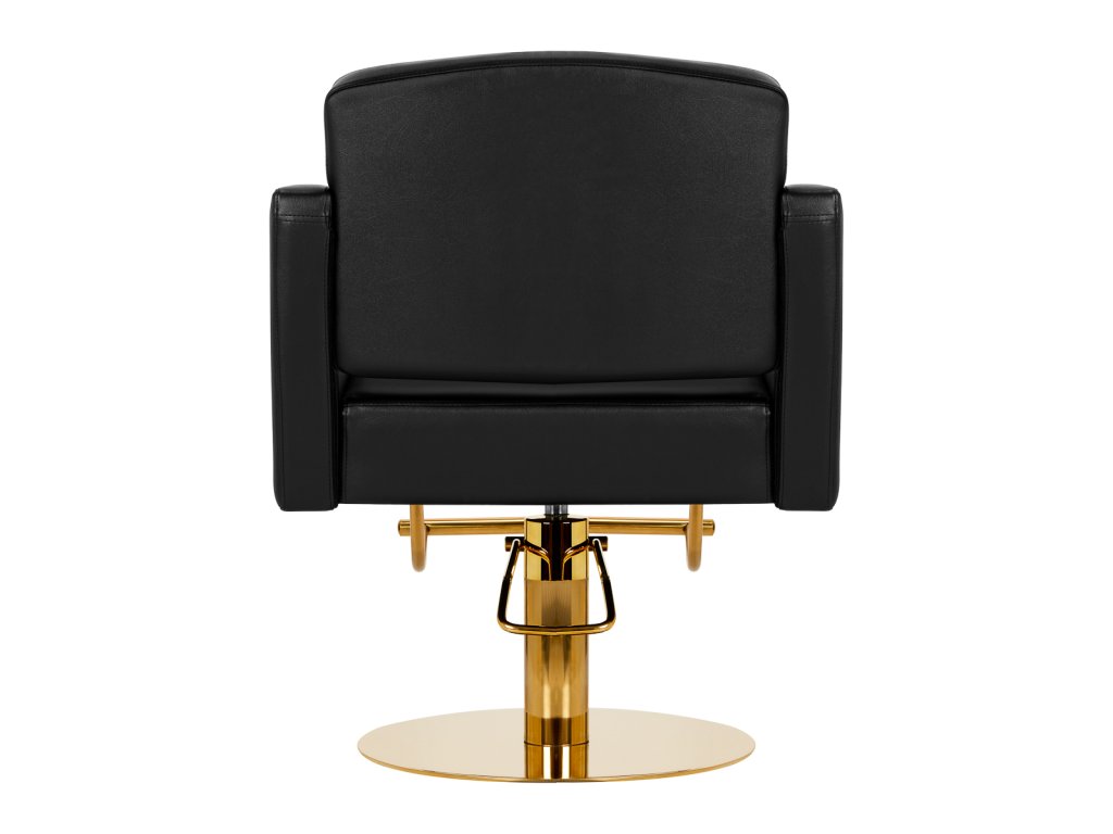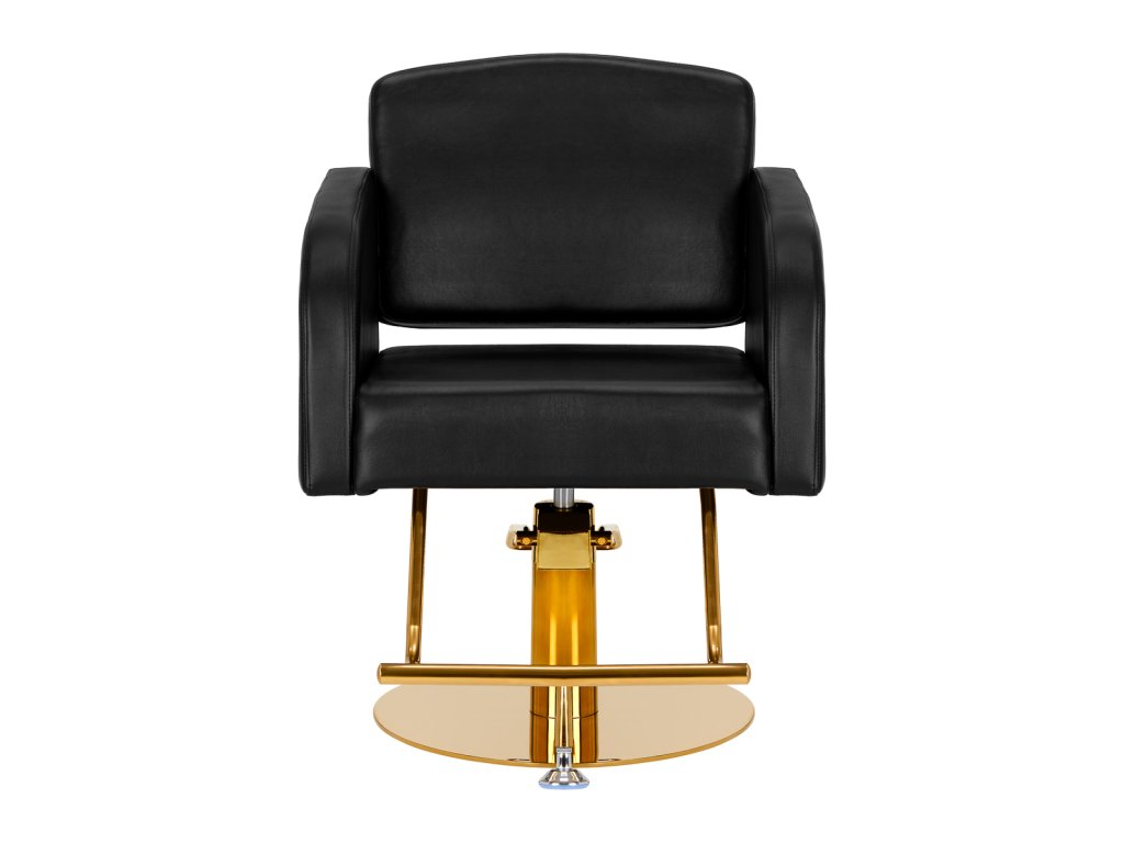 Plochá, okrúhla základňa zaručuje stabilitu nábytku počas používania. Vďaka hladkému povrchu so zrkadlovou úpravou je tento prvokľahko sa udržiava v čistote. Sedadlo vyplnené odolnou penou zaručuje vysoký komfort používania a pohodlie aj počas mnohých hodín ošetrovania. Významnou výhodou jeopierka na nohy určená pre tento model, ktorá poskytuje stabilnú oporu pre nohy používateľa a dodáva im štýlový vzhľad. Podrúčky sú v správnej výške, čoumožňuje správnu polohu ramien klienta - to znamená, že nezakrýva hlavu do ramien ani sa nehrbí - čo jednoznačne uľahčuje presné vykonávanie ošetrení vrátane strihania vlasov.