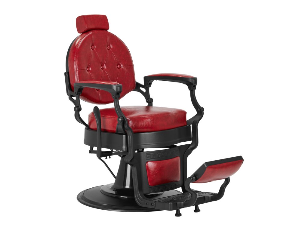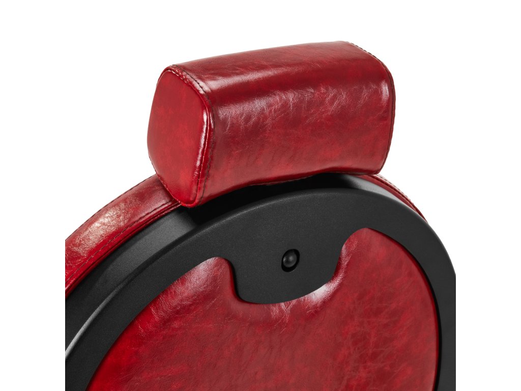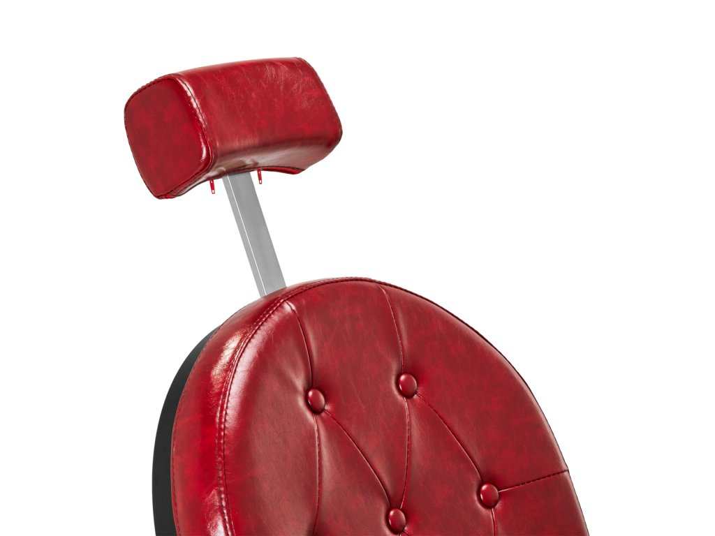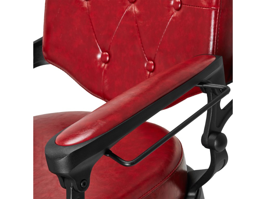 Pevná konštrukcia základne zaručuje stabilitu a vysoký komfort používania. Výplň sedadla je vyrobená z odolnej peny odolnej proti deformácii a čalúnenie je z príjemnej na dotyk syntetickej kože s lesklou povrchovou úpravou, ktorá zabezpečujeodolnosť nábytku a jeho pohodlné používanie počas dlhého obdobia. Vyrábajú tiež zariadeniaodolné voči vlhkosti, trvanlivé a ľahko sa čistia. Poťah v červených odtieňoch s prešívaním a ozdobnými gombíkmi mu dodáva jedinečný charakter. Kreslo s charakteristickým dizajnom,s odkazom na vintage štýl, dokonale zapadá do atmosféry holičstiev a podčiarkuje ich jedinečnú atmosféru.