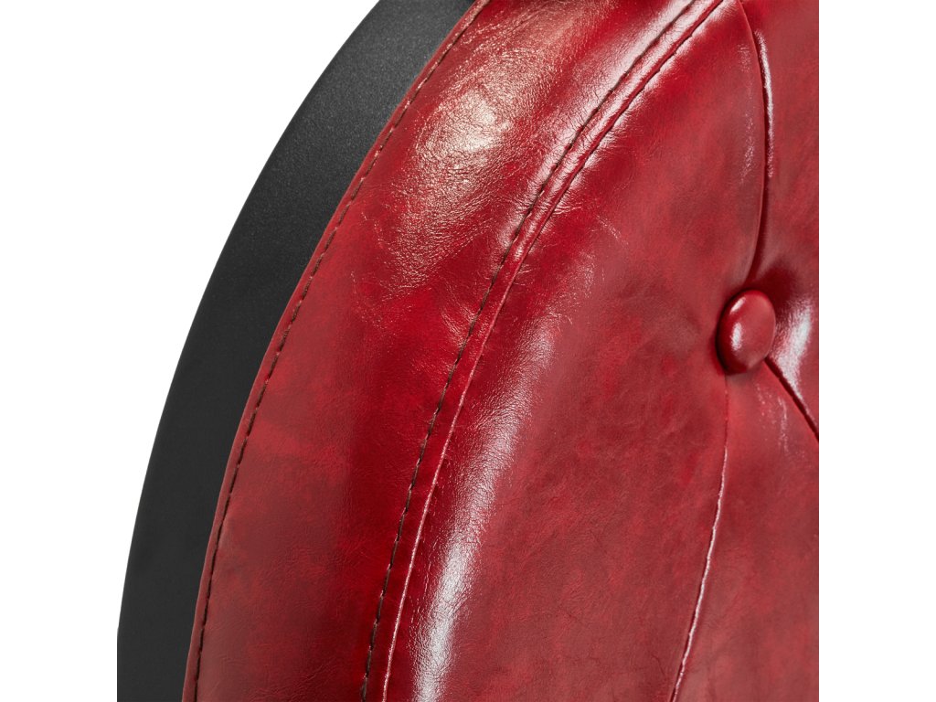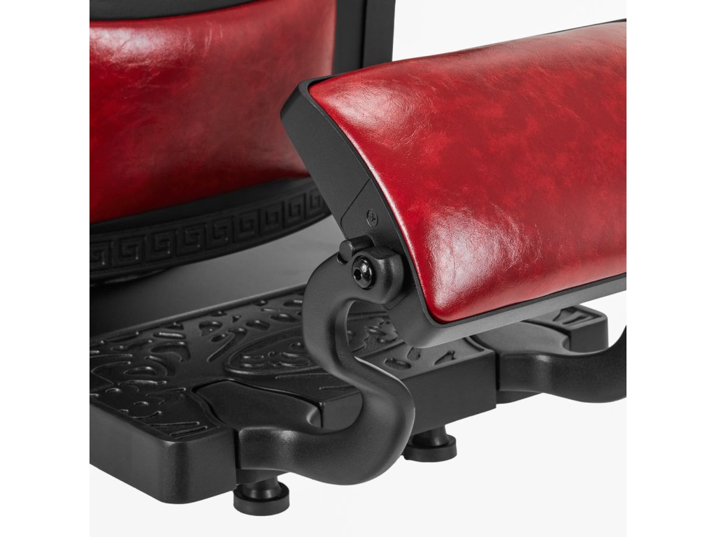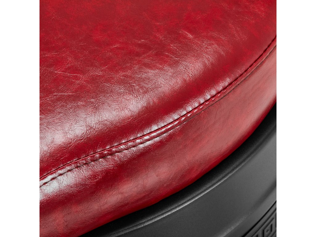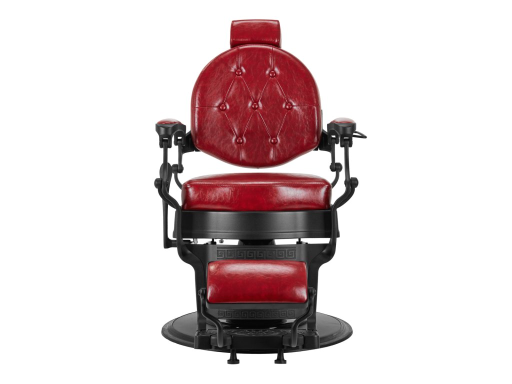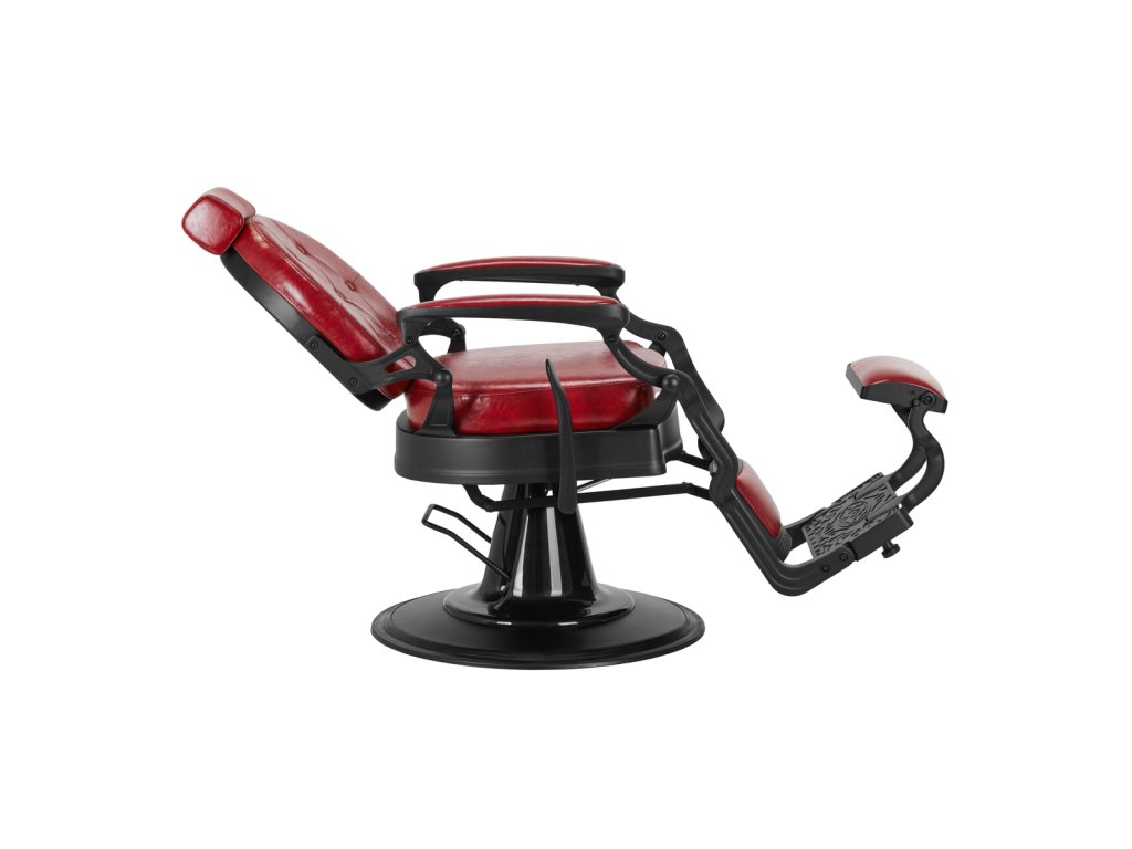 Pevná konštrukcia základne zaručuje stabilitu a vysoký komfort používania. Výplň sedadla je vyrobená z odolnej peny odolnej proti deformácii a čalúnenie je z príjemnej na dotyk syntetickej kože s lesklou povrchovou úpravou, ktorá zabezpečujeodolnosť nábytku a jeho pohodlné používanie počas dlhého obdobia. Vyrábajú tiež zariadeniaodolné voči vlhkosti, trvanlivé a ľahko sa čistia. Poťah v červených odtieňoch s prešívaním a ozdobnými gombíkmi mu dodáva jedinečný charakter. Kreslo s charakteristickým dizajnom,s odkazom na vintage štýl, dokonale zapadá do atmosféry holičstiev a podčiarkuje ich jedinečnú atmosféru.