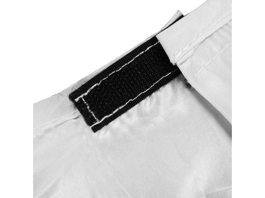 PohodlnéZapínanie na suchý zips umožňuje nastavenie a individuálne prispôsobenie každému klientovi. Výrobok je vyrobený zvodotesný materiál, vďaka čomu sa ľahko čistí a je tiež odolný voči vlhkosti, čímochrana oblečenia pred namočením počas kaderníckych procedúr. Jeho kompaktné rozmery amimoriadne jednoduché skladanie uľahčujú skladovanie.