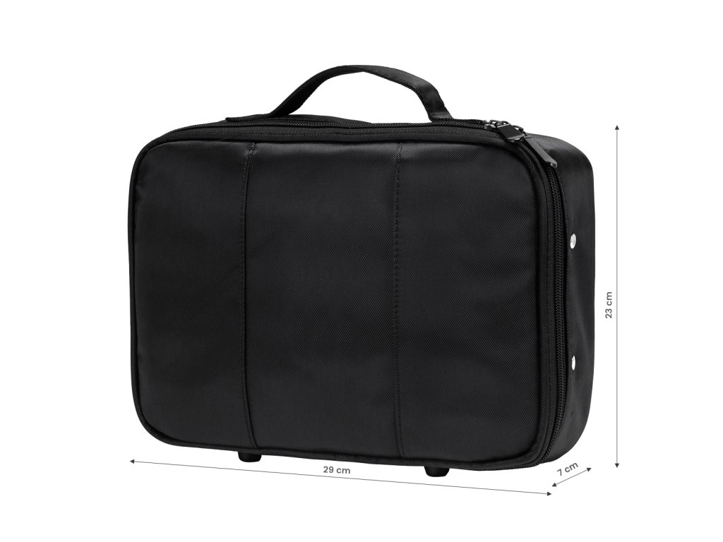Objemný kadernícky kufrík je ideálny pre mobilných stylistov a uľahčuje organizáciu práce. Poskytuje dostatočné priestor na uskladnenie všetky potrebné produkty apohodlný spôsob prepravy ich. Má množstvo priehradiek a miest na príslušenstvo, ktoréuľahčuje udržiavanie poriadku. Zmestia sa do nej všetky základné kozmetické prípravky a nástroje a poskytnerýchly a pohodlný prístupk nim počas práce.