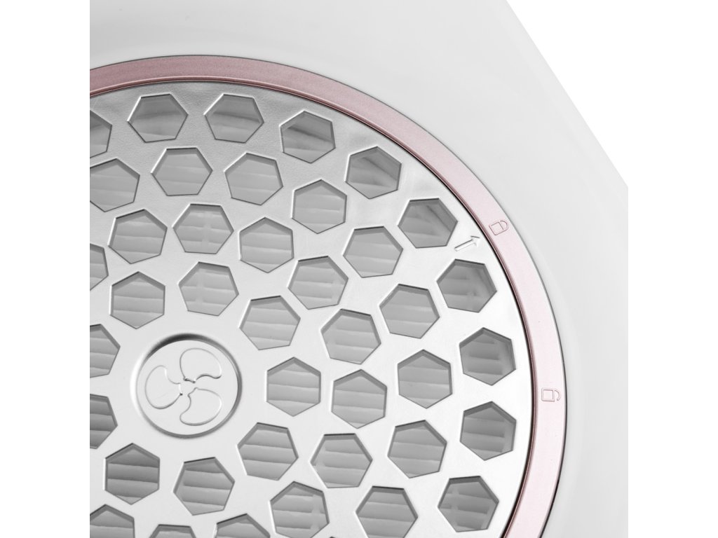 Ľahká konštrukcia a malé rozmery zariadenia zabezpečujú pohodlné používanie v takmer akýchkoľvek podmienkach a budú vhodné aj pre mobilné služby. Zjednodušený, jemný tvar absorbéra mu dávaelegantný vzhľad. Jednoduchá plastová základňa v odtieňoch bielej, polomatná sivá mriežka a polomatný dekoratívny kruh v ružovo-zlatej farbe dodávajú zariadeniu minimalistický vzhľad a dokonale zapadnú do každého interiéru. Použité materiály zaručujú odolnosť a jednoduché čistenie. Protišmykové nožičkyzabezpečiť stabilitu zariadenia počas služieb.