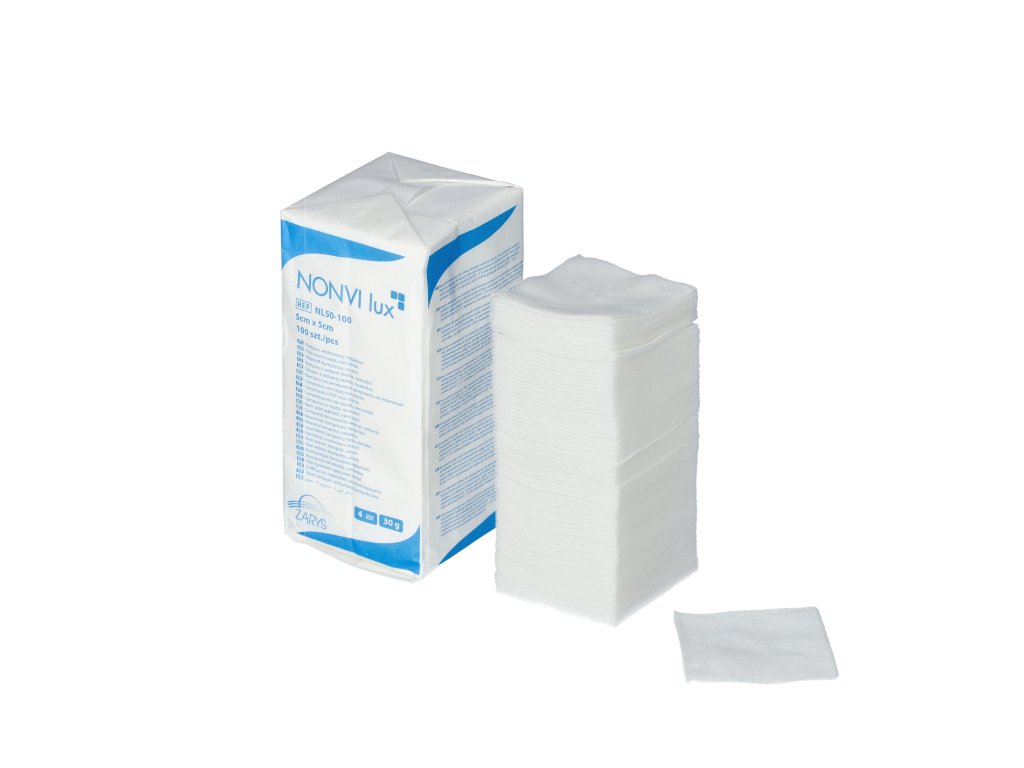 NONVI lux Nesterilný tampón vyrobený z hydrofilného netkaného zdravotníckeho materiálu s gramážou 30 g/m².