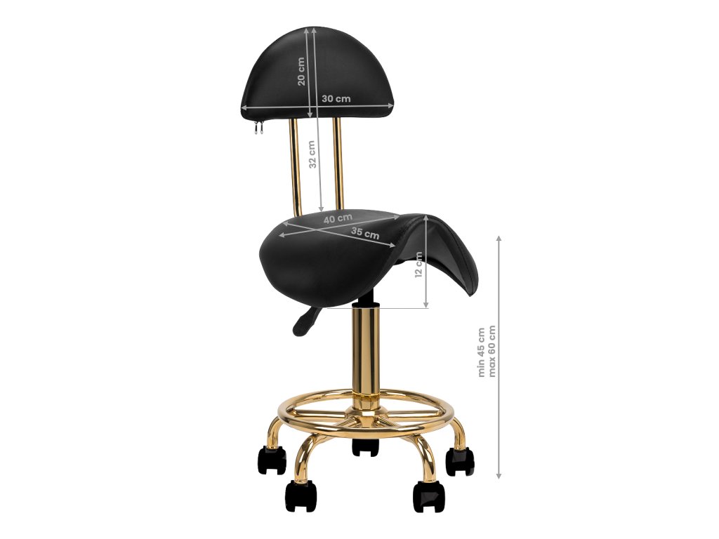 Možnosť nastavenia výšky sedadlav rozmedzí 45-60 cm uľahčuje špecialistovi správne polohovanie tela pri vykonávaní služieb. Sedadloprofilované do tvaru sedla vyplnené trvanlivou penou odolnou voči deformáciizaručuje používateľom pohodlie a ergonómiu práce. Pohodlné operadlo poskytuje vynikajúcu oporu chrbta bez ohľadu na výšku používateľa.Mechanizmus úplného otáčania zefektívňuje a spríjemňuje prácu.