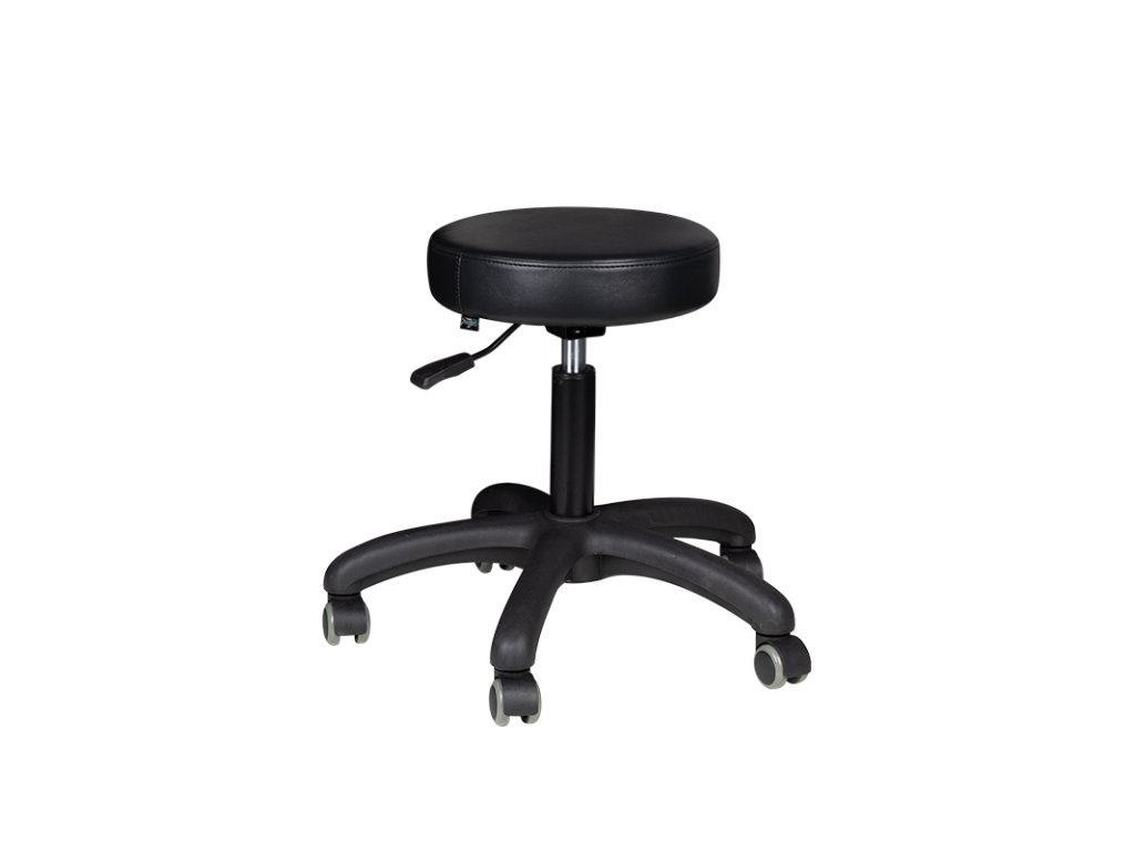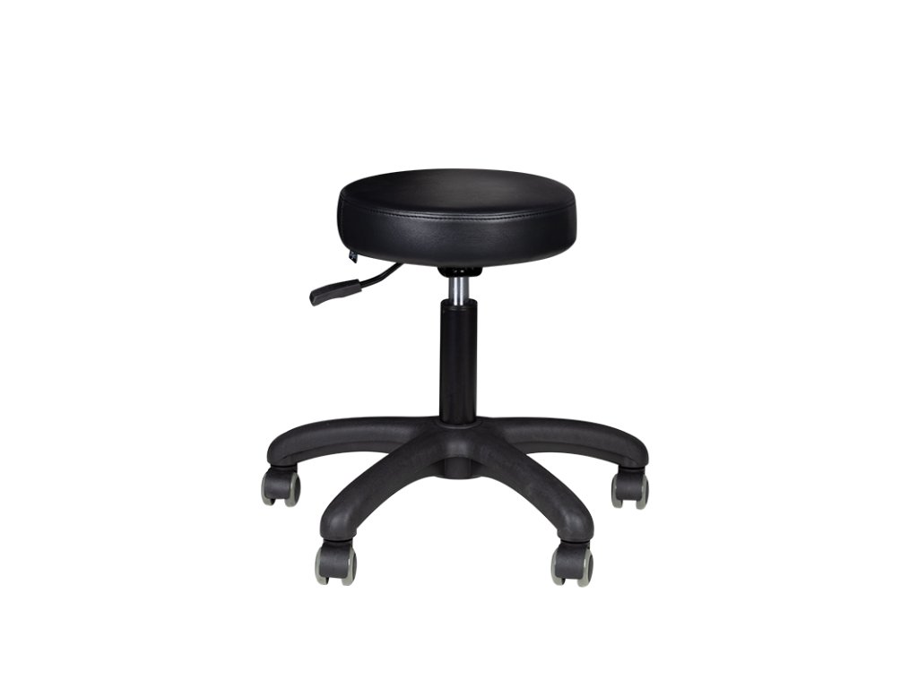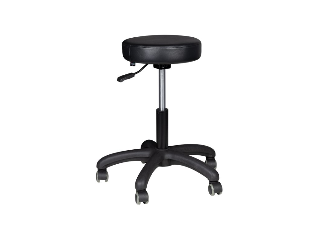 pohodlná kozmetická stolička, stabilná na päťhviezdičkovej základni, s pogumovanými kolieskami. potrebný kus nábytku v kozmetickom salóne.