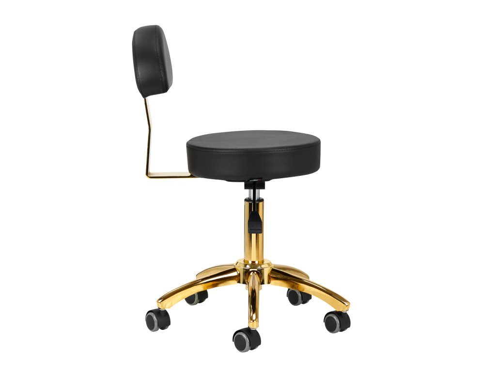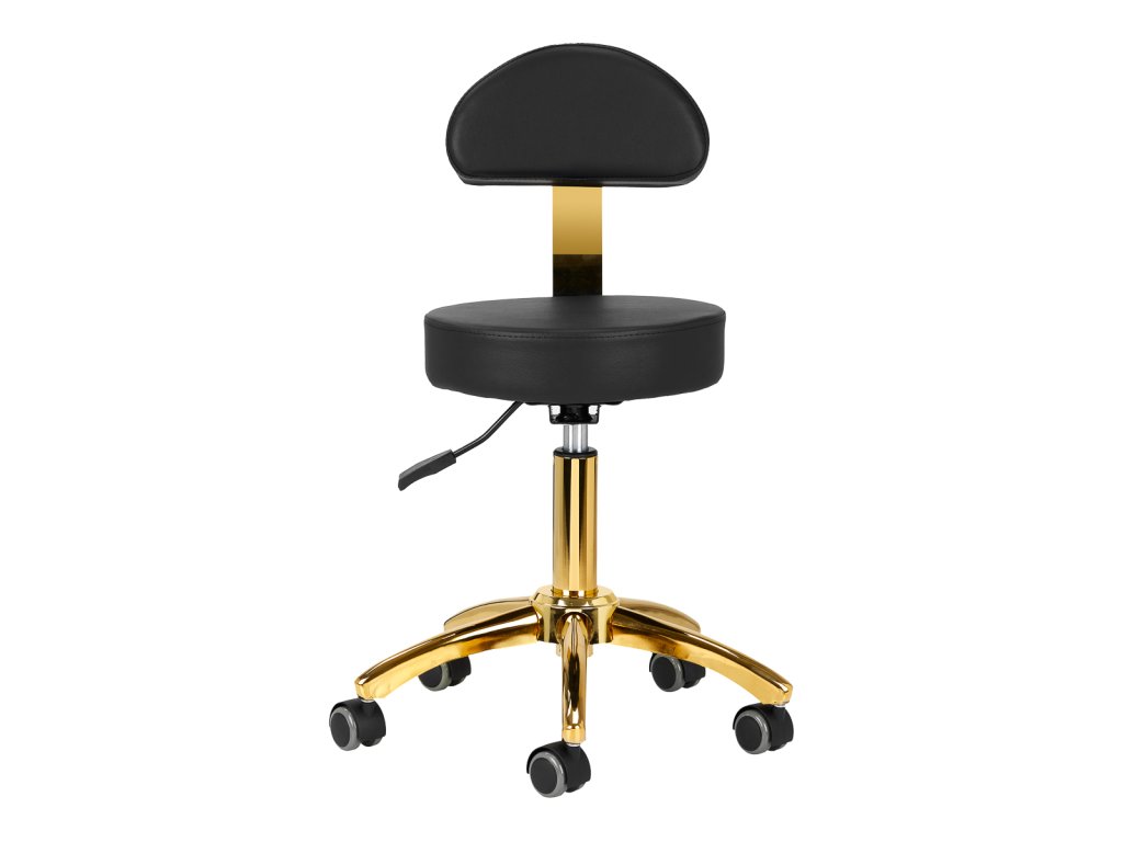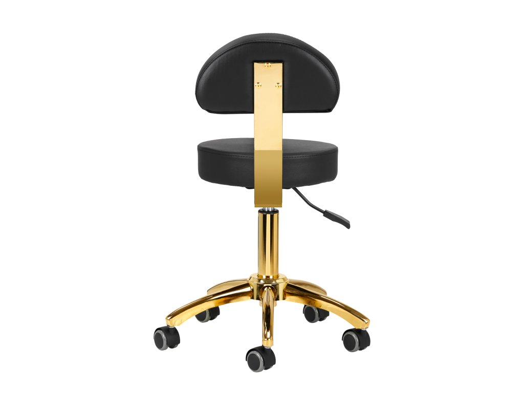 Základňa s piatimi ramenami zabezpečuje stabilitu a pocit istoty aj pri dynamickejších pohyboch a častých zmenách polohy. Vybavenéodolné kolesá zabezpečuje vysokú mobilitu, ktorá vám umožňujevoľne sa pohybovať po kancelárii. Čalúnenie zo syntetickej kože v odtieňoch čiernej farby, ktorá je nielen odolné, ale aj ľahko udržiavateľné v čistote. Estetické prešívanie a prešívanie mu dodávajú jedinečný vzhľad a zlaté ozdobné prvky mu dodávajú luxusný charakter, ktorý priťahuje pozornosť. Vďaka jedinečnej kombinácii elegancie a pohodlia je stoličkanenahraditeľný nástroj v práci každého profesionála.