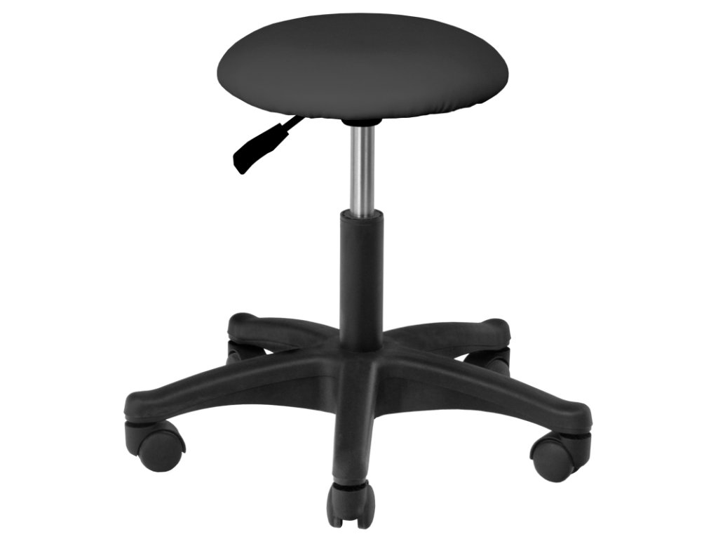 pohodlná kozmetická stolička, stabilná na päťhviezdičkovej základni, s plastovými kolieskami. potrebný kus nábytku v kozmetickom salóne.
