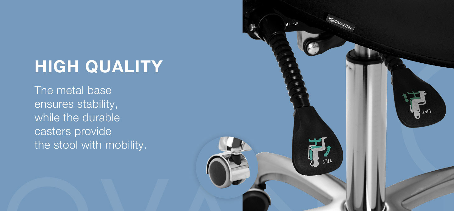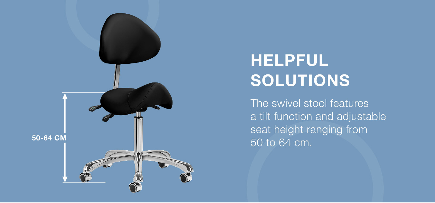 Možnosť nastavenia výšky sedadlav rozmedzí 50-64 cm umožňuje špecialistovi zaujať vhodnú polohu pri vykonávaní služieb.Tvarované operadlo, ktorý sa dá predĺžiť o 20 cm,poskytuje vynikajúcu oporu chrbtabez ohľadu na výšku používateľa.Mechanizmus úplného otáčania zefektívňuje a spríjemňuje prácu. Stolička tiežmá funkciu uzamykateľnej kolísky, ktorá umožňuje ergonomické polohovanie tela pri práci.Správne profilované sedlo v tvare sedla, vyplnené penou odolnou proti deformácii, zaručuje používateľom pohodlie a ergonómiu práce.