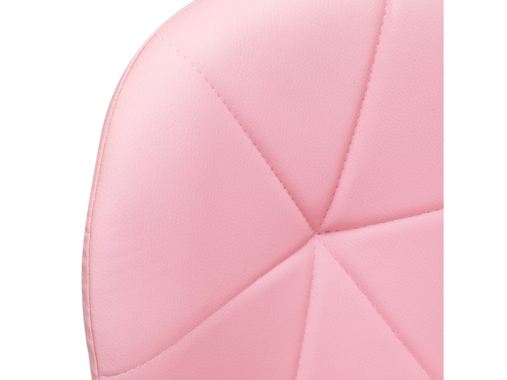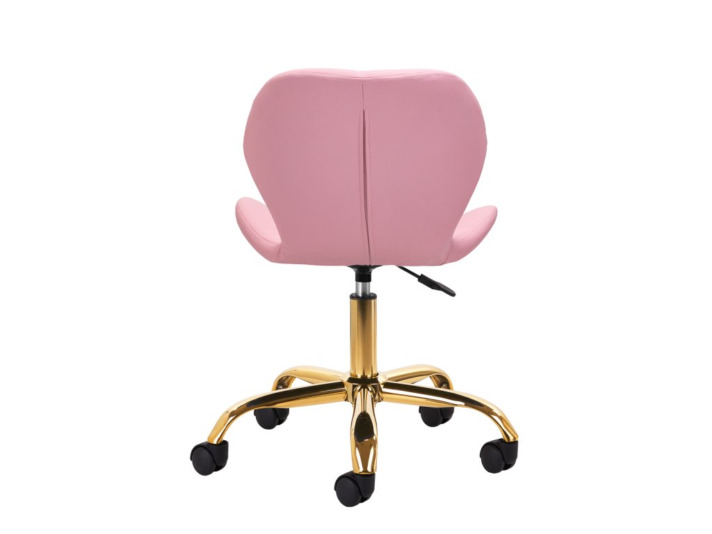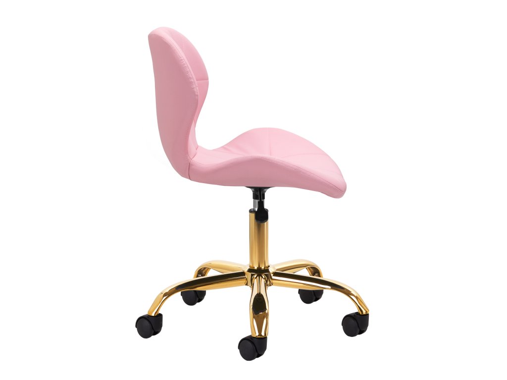 Stránkapäťhviezdičková základňa v zlatých odtieňoch je vybavenáplastové kolesá, čo zabezpečuje značnú mobilitu a umožňuje, aby sa nábytokvoľne sa pohybovať po pracovisku. Sedadlo je čalúnenéna dotyk príjemná umelá koža v elegantnom ružovom odtieni. Materiálzaručuje trvanlivosť, odolnosť voči vlhkosti a jednoduché čistenie. Dizajn je doplnenýštýlové prešívanie, čím sa zvýrazní moderný vzhľad.