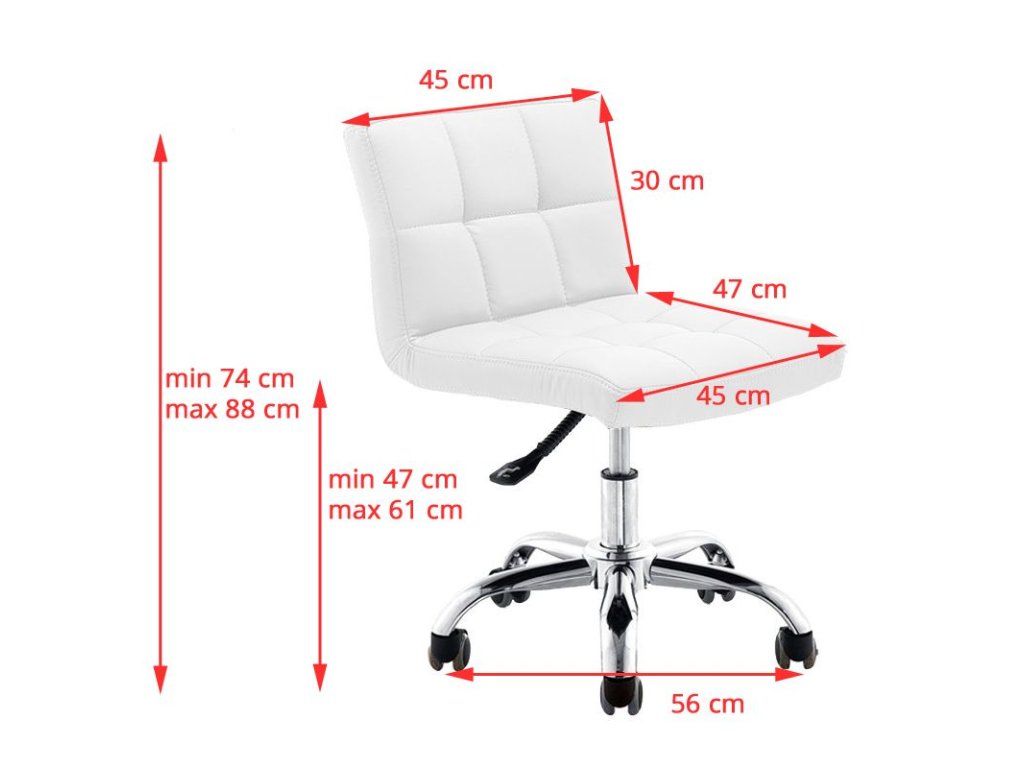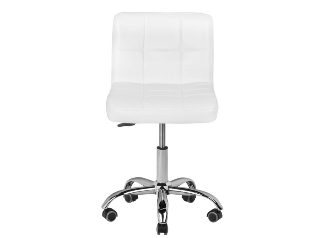 moderné biele kozmetické kreslo. veľmi pohodlné sedadlo s moderným vzhľadom a pekným prešívaním. kvalitná ekokoža zaručuje ľahšiu starostlivosť o nábytok. sedadlo je nastaviteľné hore a dole. gumové kolieska.