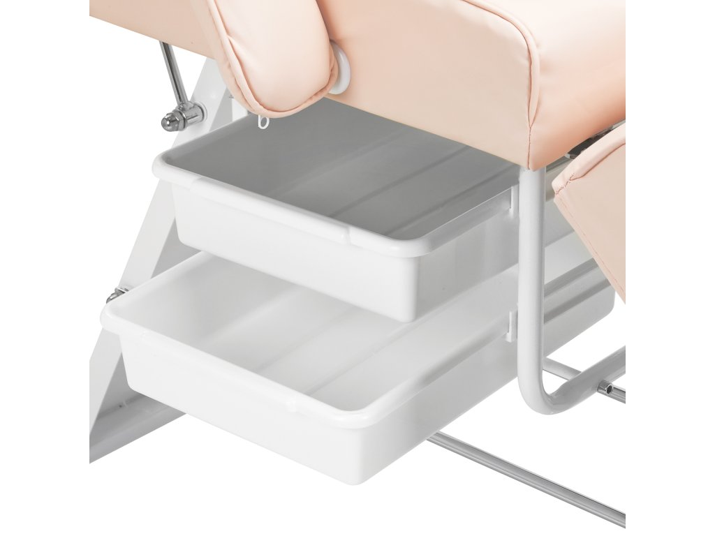 Kozmetické kreslo Basic 202 s dvoma vaničkami je praktické zariadenie, ktorévýrazne zlepšuje prácu v špecializovaných salónochvrátane kozmetických, masážnych a tetovacích salónov. Zariadenie je ideálne pre ľudí, ktorí hľadajújednoduché a funkčné kozmetický nábytok. Vďakavýsuvné kontajnery inštalované pod sedadlom, najdôležitejšie nástroje a prípravky sú vždy po ruke.