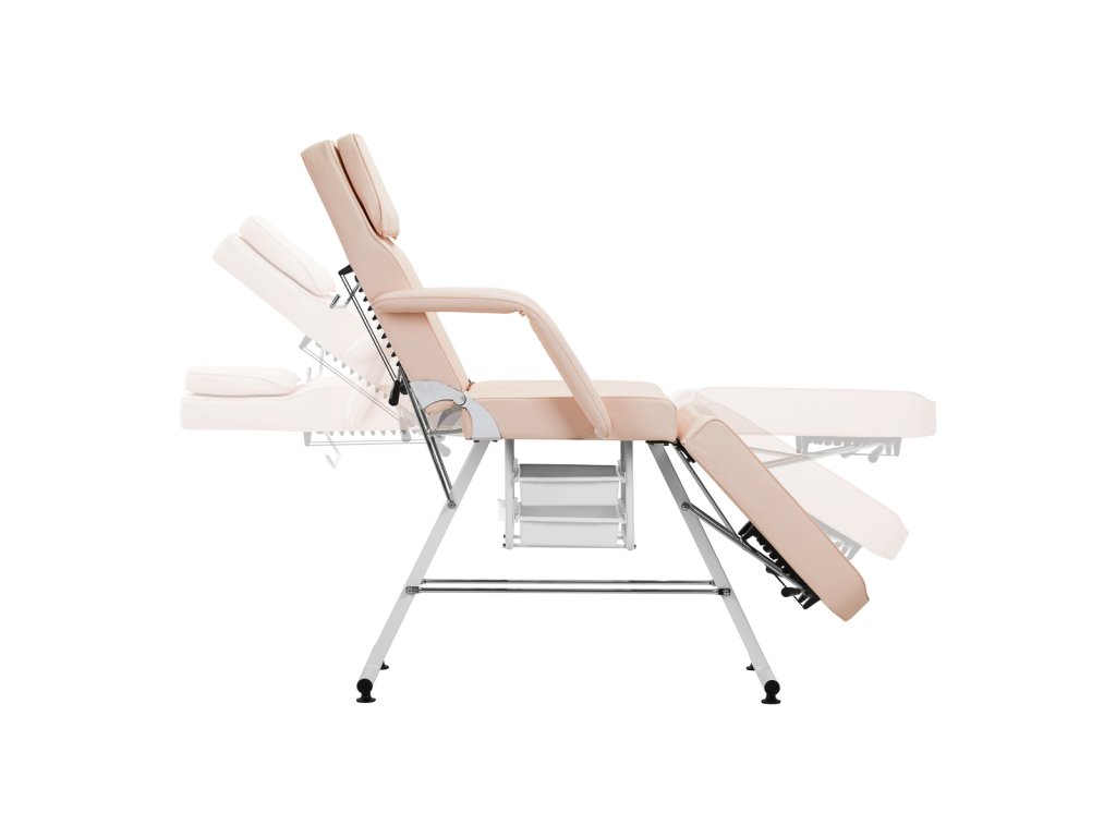 Špeciálny mechanizmuszabezpečuje postupné nastavenie uhlov opierky nôh a operadla. Pomocou páčky môžete voľne nastaviť polohu sedadla. To umožňujena optimálne prispôsobenie individuálnym potrebámpre správne a pohodlné vykonávanie ošetrení a vysoký komfort používania. Kreslo sa dá rozložiť napoloha ležmo, čo výrazne zvyšuje jeho funkčnosť. To vám umožňujevoľne vykonávať rôzne typy ošetrení, vrátane kozmetiky, fyzioterapie a tetovania.