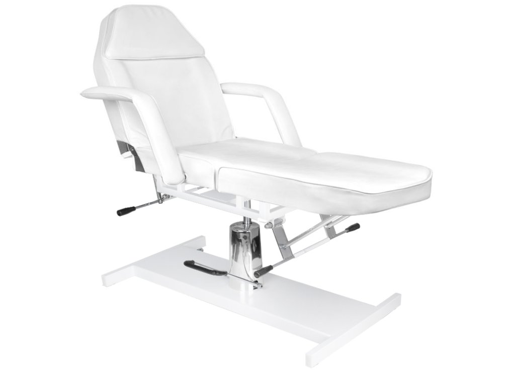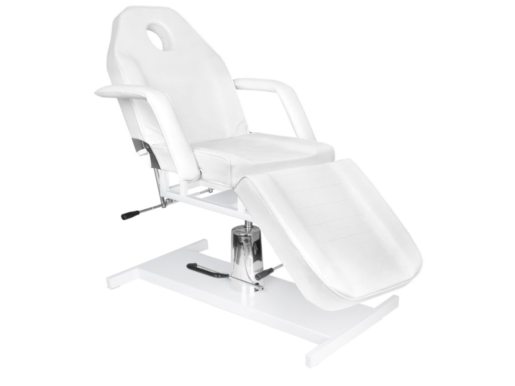 Výšku sedadla možno nastaviť v rozsahu65-79 cm bez použitia rúk pomocou hydraulického čerpadla. To umožňujepohodlné používanie zariadenia pre ľudí rôznej výšky a umožňuje prispôsobiť ho individuálnym potrebám klienta aj osoby vykonávajúcej zákrok. Použitý mechanizmus jeveľmi odolné a spoľahlivé. Vďaka otvoru v opierke hlavy, ktorý je ukrytý pod vhodne profilovaným vankúšom, bude stolička ajideálny na ošetrenie chrbta, ako sú masáže alebo tetovanie.