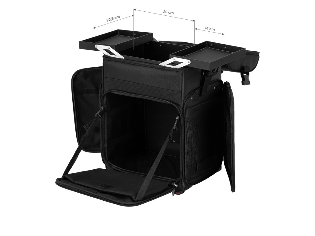 Kozmetický kufrík Look 328 na kolieskach je ideálnym riešením pre profesionálne kozmetičky, kaderníčky a vizážistky, ktoré potrebujúmobilné a funkčné nástroj na prácu. Praktický kufrík je vybavenýpohodlná, výsuvná rukoväť a ľahko odnímateľné kolieska a ľahko sa premiestňuje.Priestranný interiér umožňuje rýchle rozdelenie a uskladnenie mnohých kozmetických doplnkov, takževšetky potrebné predmety nájdu svoje miesto.