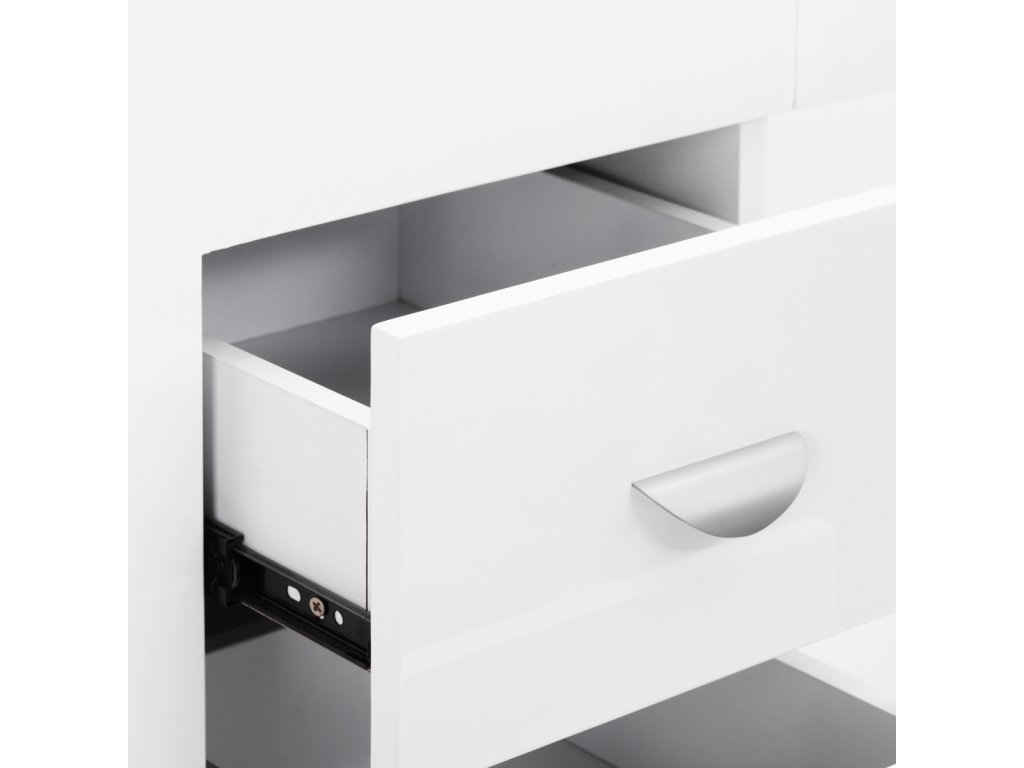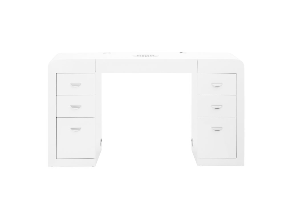 Skrinky na oboch stranách s tromi priestrannými zásuvkami výrazne uľahčujú organizáciu a udržiavanie poriadku v najpotrebnejších kozmetických prípravkoch a nástrojoch. Vďaka tomu sú potrebné výrobky vždy po ruke, čo sa prejavuje v efektivita práce. Stôl má špeciálneotvory v doske stola na vedenie káblovz potrebných zariadení, čo vám umožňujeľahko udržiavať poriadok a estetiku pracoviska.