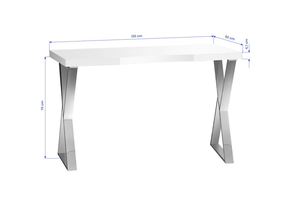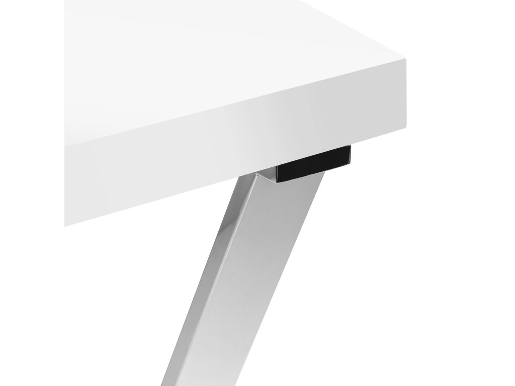 Biela vrchná časť s vysokým leskom a geometrické, strieborné nohy mu dodávajúľahkosť a moderný charakter. Vďaka svojej ľahkej forme sa bude dobre vynímať v intímnych aj priestranných interiéroch,zdôraznenie ich výlučného charakteru. Je to vynikajúca investícia doestetika a komfort každodennej práce.