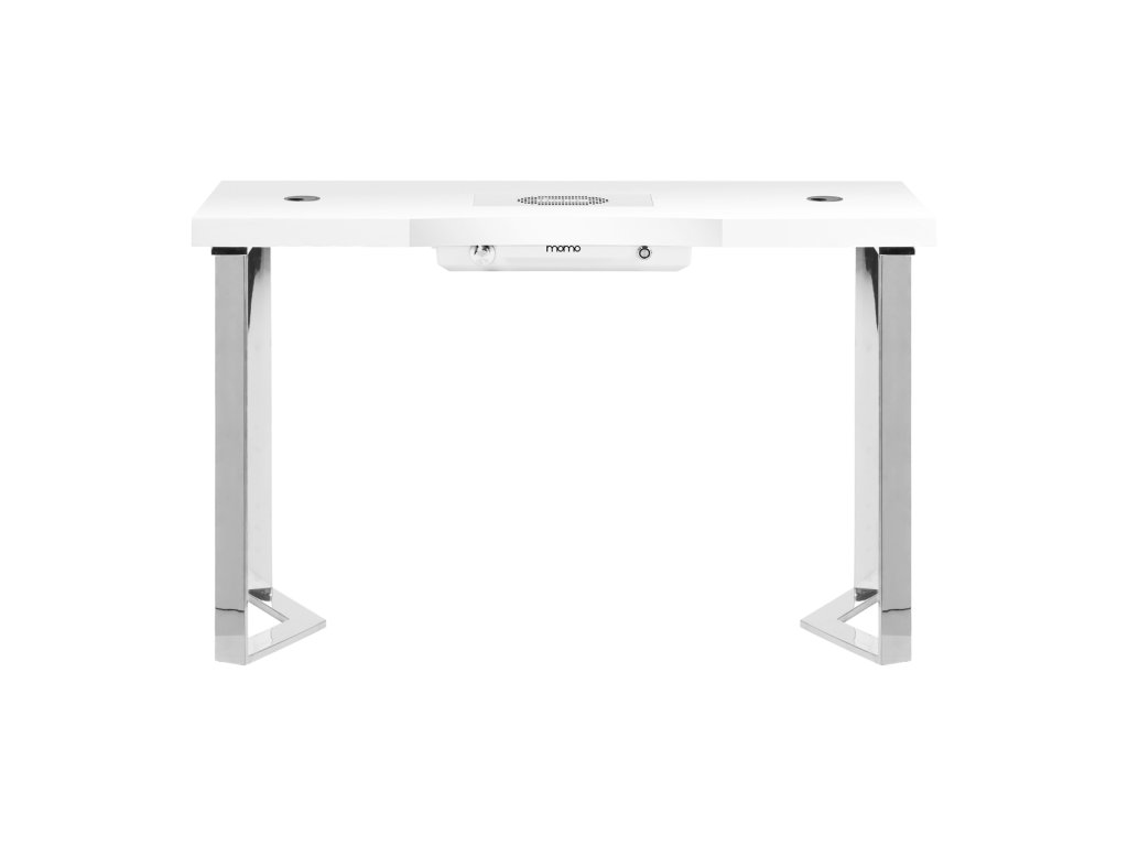 Kozmetický stolík Momo 05 je jedinečnou kombináciou jednoduchosti a štýlu, ktorá je určená pre náročných používateľov.Minimalistický dizajn so striebornými prvkami dodáva elegantný charakter. Hladká, vysoko lesklá vrchná časťzaručuje pohodliepri vykonávaní každodenných povinností v kozmetickom salóne.