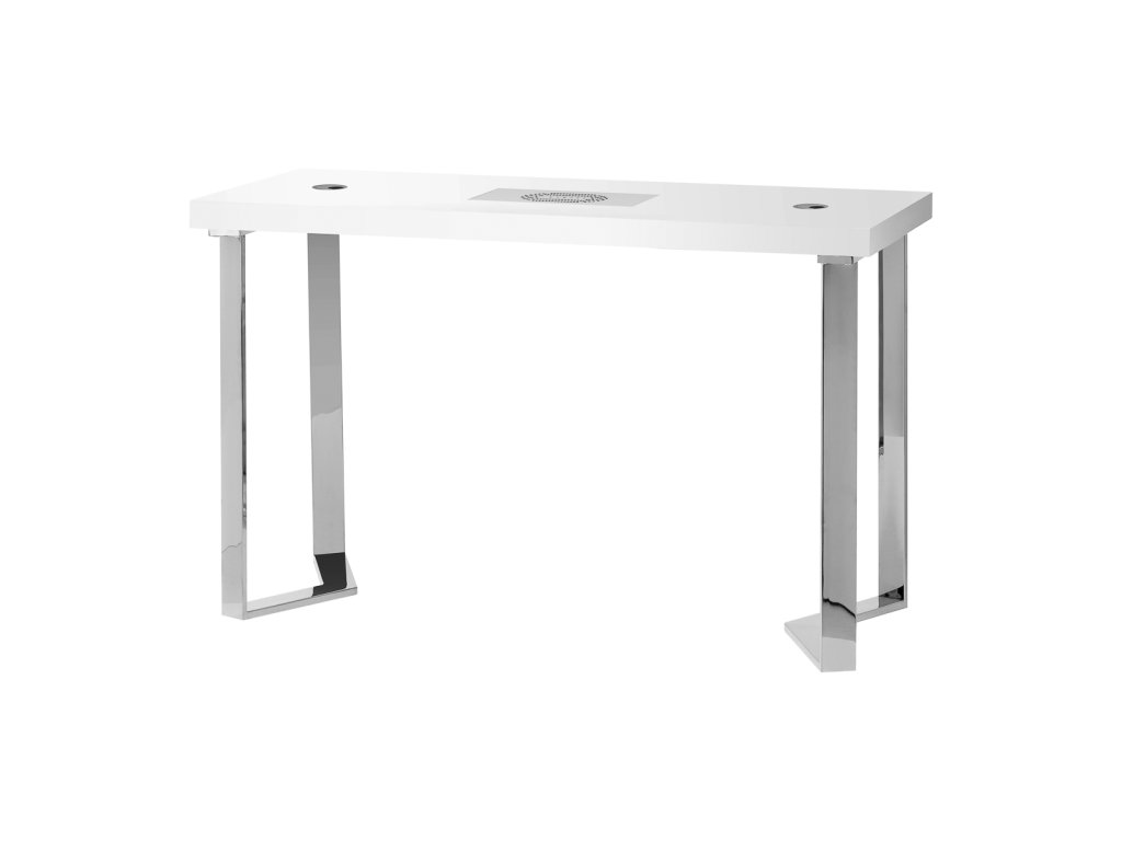 Moderná forma písacieho stola kombinuje bielu dosku so striebornými geometrickými nohami,dodáva interiéru ľahkosť a eleganciu. Premyslené detaily, ako naprintegrované zásuvky na káble a montáž príslušenstva,pomáha udržiavať poriadok na pracovisku. Vďaka kompaktnému a zároveň štýlovému tvaru bude stôldokonale fungujú v malých aj väčších priestoroch, moderné interiéry.