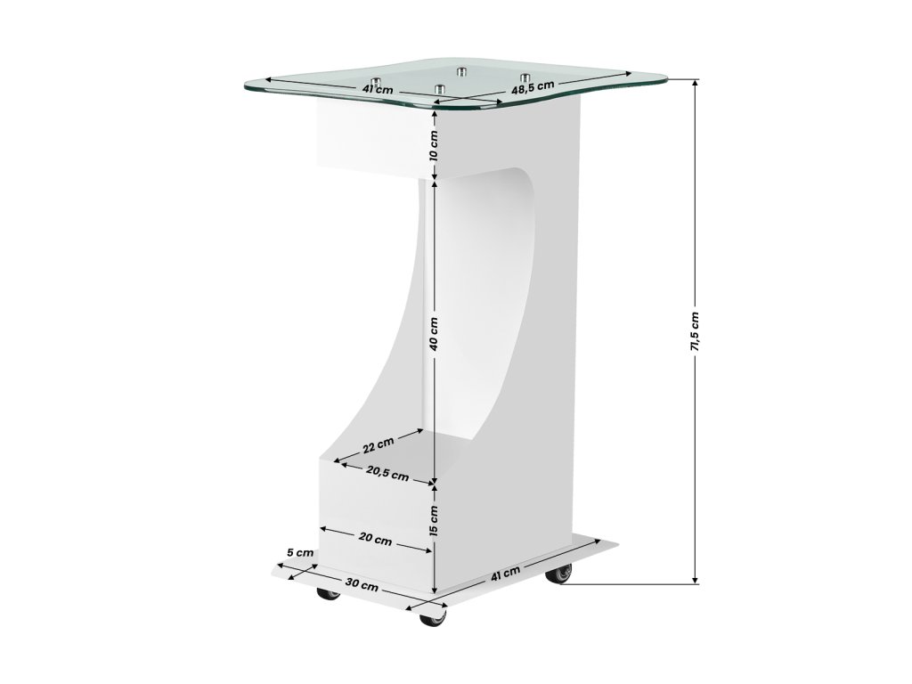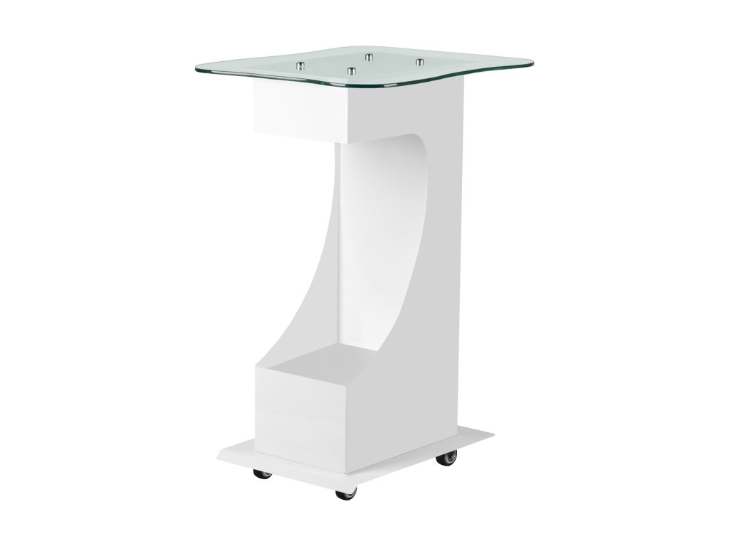 funkčný, kovový a sklenený stolík s gumovými kolieskami s funkciou blokovania. Ideálny ako stolík pre kozmetické zariadenie. má stabilnú poličku na zariadenie a vďaka kolieskam je stolík mobilný a ľahko sa premiestňuje. kus nábytku poskytuje pohodlie a komfort pri práci.