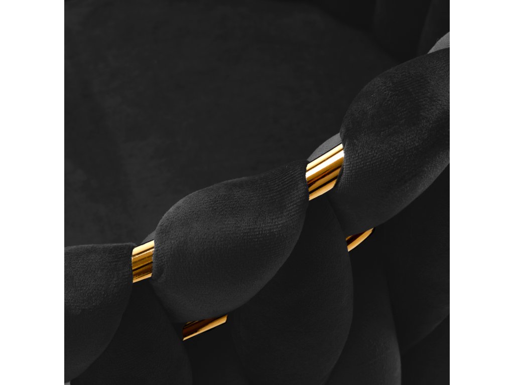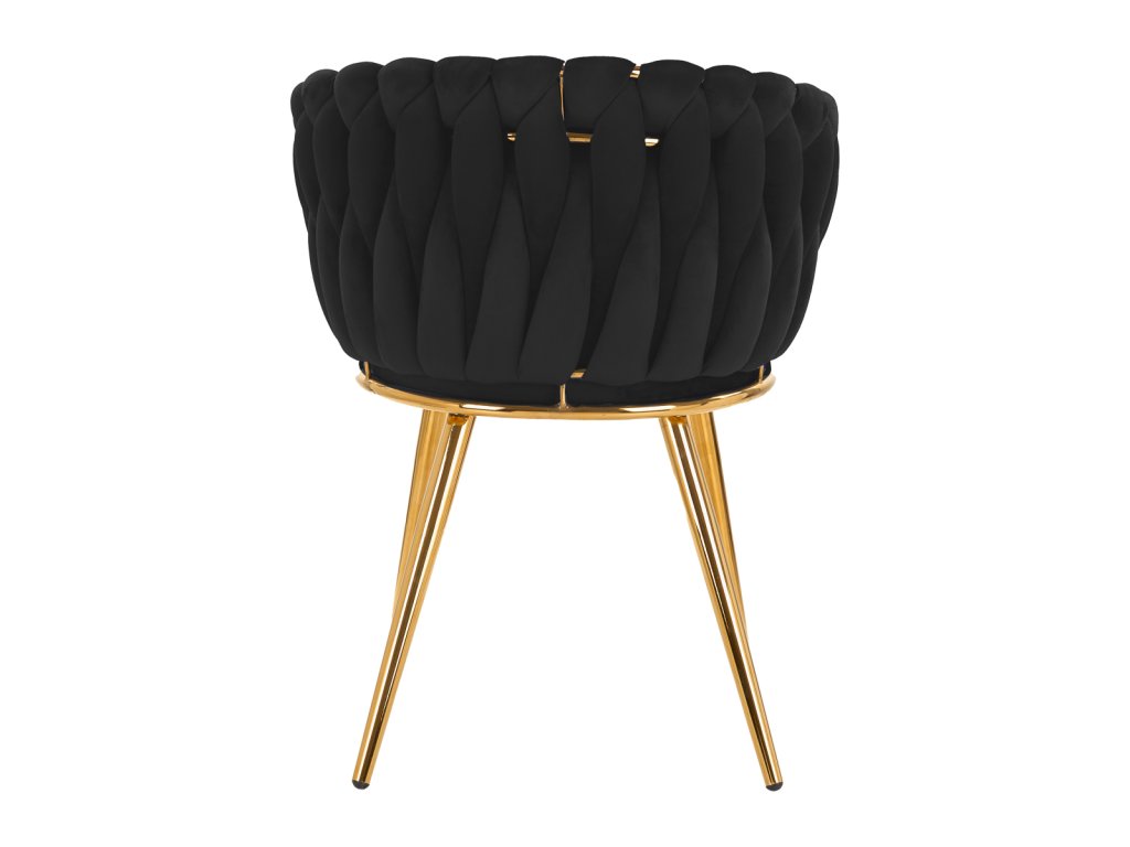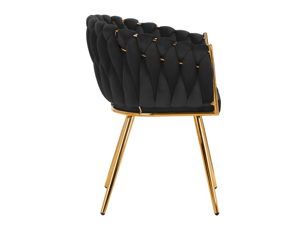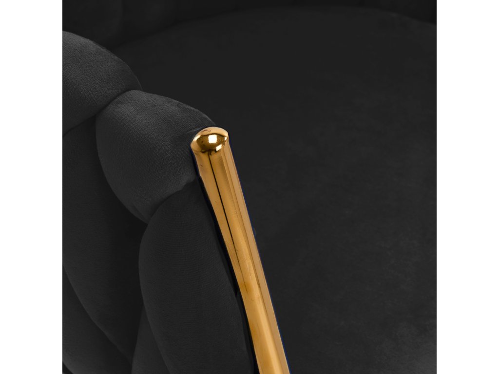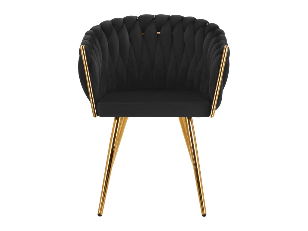 Na dotyk príjemný materiál, zamatové čalúnenie v odtieňoch čiernej farby dodáva stoličke jedinečný charakter a esteticky prepletená látka na operadle zdôrazňujejedinečný vzhľad nábytku. To mu dodáva exkluzívny vzhľad a zabezpečuje pohodlie pri používaní. Rám v odtieňoch zlatej farby dodávaelegancia a prestíž, ktoré dokonale ladia so zamatom. Elegantná stolička 4Rico jevýnimočne pohodlný kus nábytku ktoré ozdobia recepciu každého kozmetického salónu.