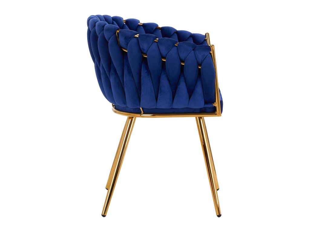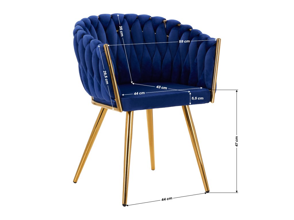 Na dotyk príjemný materiál, zamatové čalúnenie v tmavomodrých odtieňoch dodáva stoličke jedinečný charakter a esteticky prepletená látka na operadle zdôrazňujejedinečný vzhľad nábytku. To mu dodáva exkluzívny vzhľad a zabezpečuje pohodlie pri používaní. Rám v odtieňoch zlatej farby dodávaelegancia a prestíž, ktoré dokonale ladia so zamatom. Elegantná stolička 4Rico jevýnimočne pohodlný kus nábytku ktoré ozdobia recepciu každého kozmetického salónu.