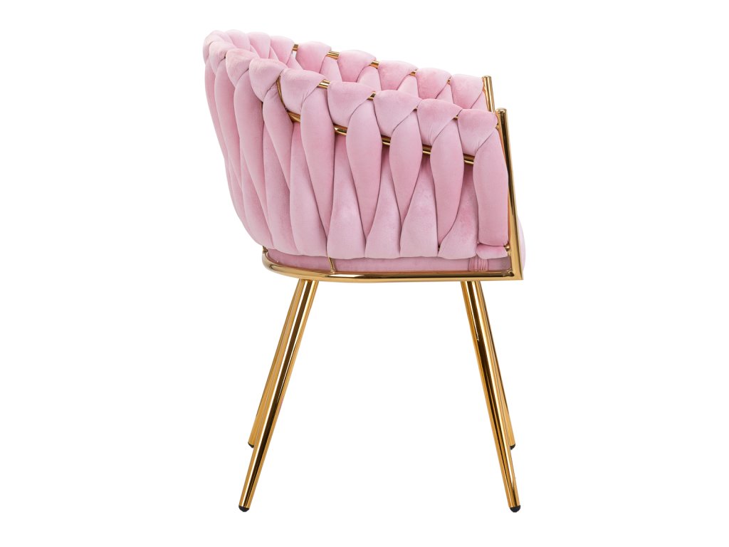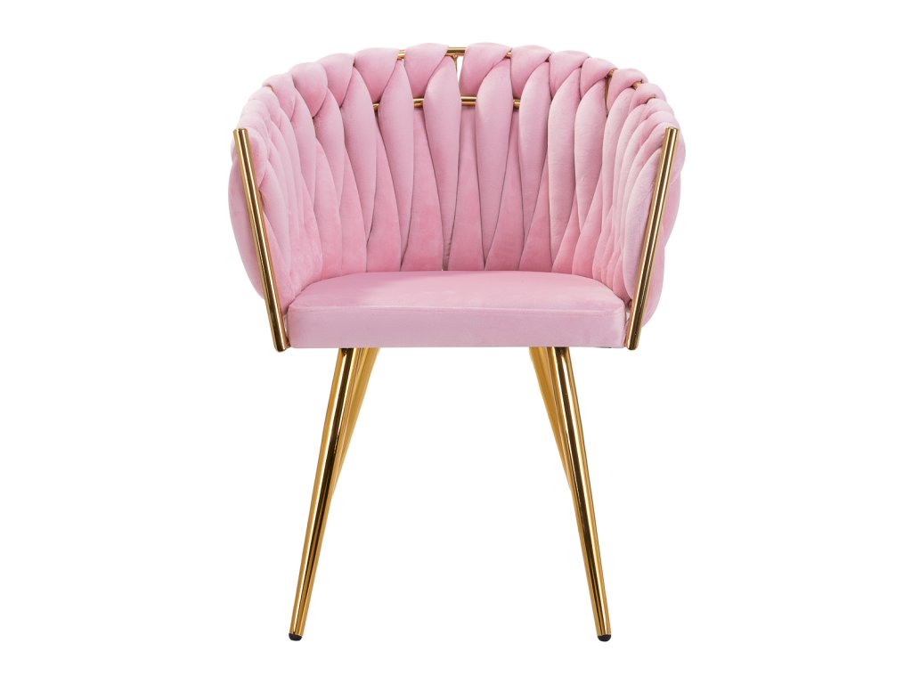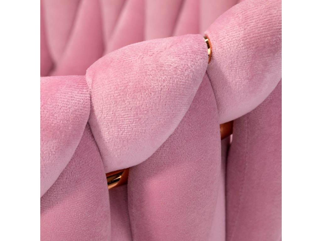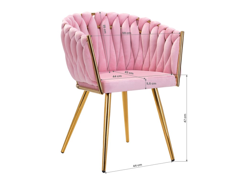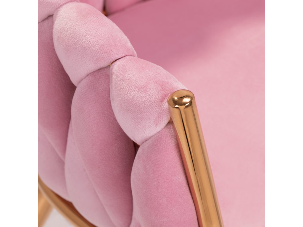 Na dotyk príjemný materiál, zamatové čalúnenie v ružových odtieňoch dodáva stoličke jedinečný charakter a esteticky prepletená látka na operadle zdôrazňujejedinečný vzhľad nábytku. To mu dodáva exkluzívny vzhľad a zabezpečuje pohodlie pri používaní. Rám v odtieňoch zlatej farby dodávaelegancia a prestíž, ktoré dokonale ladia so zamatom. Elegantná stolička 4Rico jevýnimočne pohodlný kus nábytku ktoré ozdobia recepciu každého kozmetického salónu.