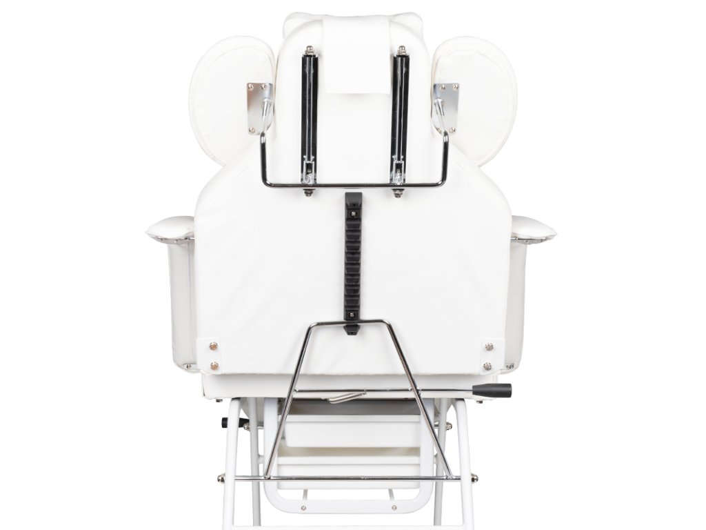 kreslo má manuálne nastavenie opierky nôh, operadla a opierky rúk pre obsluhu. použitá opierka rúk je mimoriadne praktické riešenie, ktoré sa v iných kreslách nenachádza. je vybavené pohodlným vankúšom pre klienta a praktickými schránkami na umiestnenie potrebného príslušenstva.