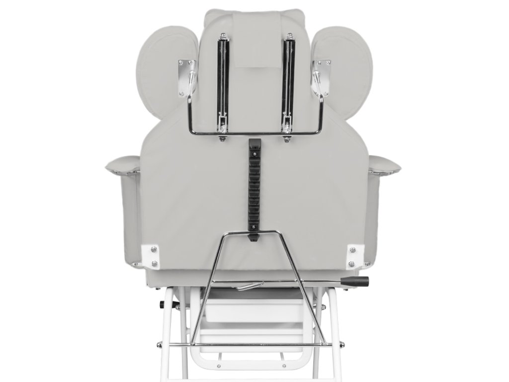 kreslo má manuálne nastavenie opierky nôh, operadla a opierky rúk pre obsluhu. použitá opierka rúk je mimoriadne praktické riešenie, ktoré sa v iných kreslách nenachádza. je vybavené pohodlným vankúšom pre klienta a praktickými schránkami na umiestnenie potrebného príslušenstva.