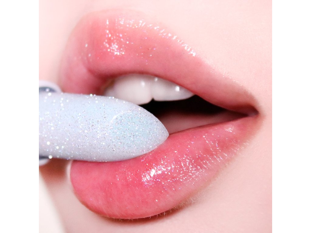 Hydratačný balzam na pery s vitamínom C a trblietavými čiastočkami pre šťavnatý, nelepivý povrch.