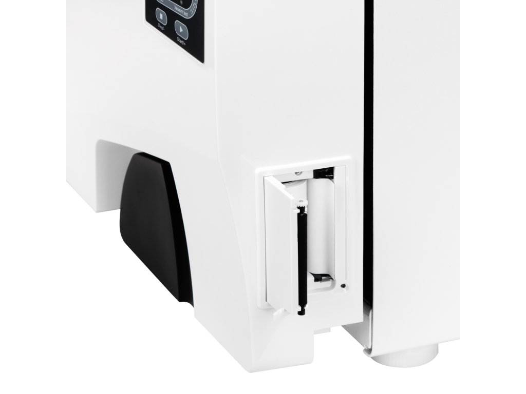 Zabudované nádrže na čistú a použitú vodu | Nádrž na čistú vodu je určená na destilovanú alebo deionizovanú vodu na sterilizáciu. Prítomnosť nádržky na použitú vodu znamená, že nemusíme pamätať na externú nádobu. Odtok použitej (a čistej) vody sa nachádza na prednej strane prístroja. |