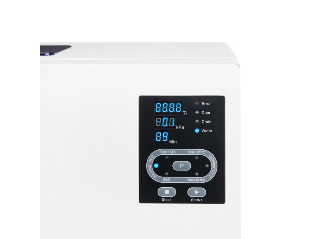 6 automatických programov | 4 sterilizačné programy a 2 testovacie programy: Bowie & Dick a vákuový test. |