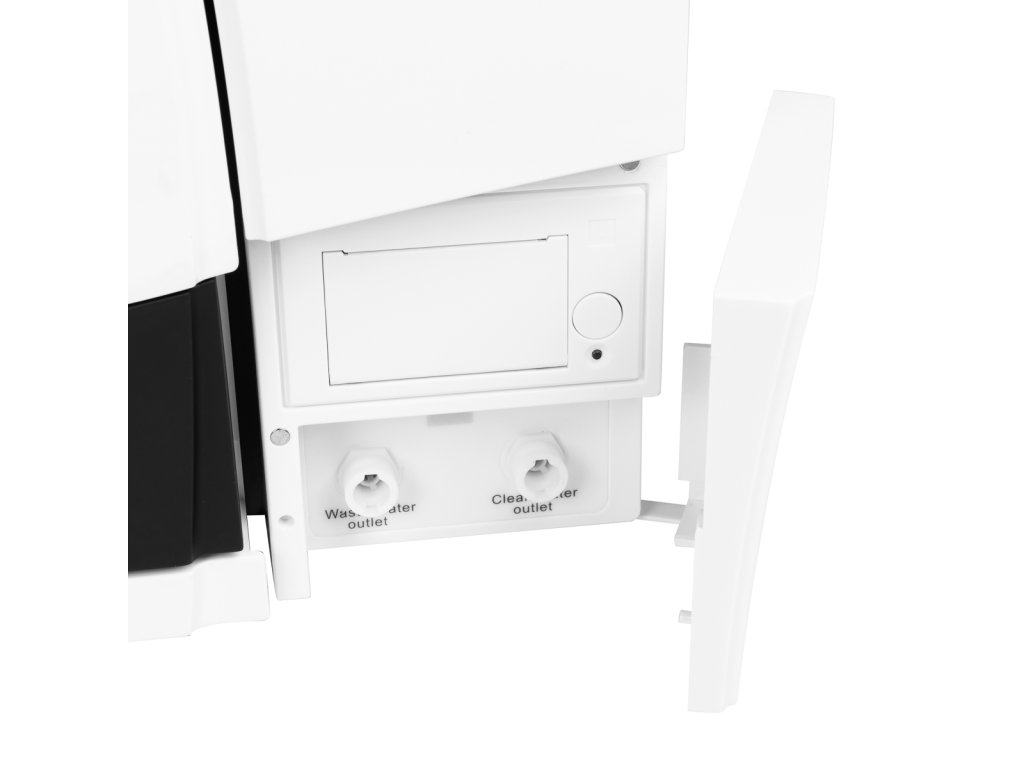 Zabudované nádrže na čistú a použitú vodu | Nádrž na čistú vodu je určená na destilovanú alebo deionizovanú vodu na sterilizáciu. Prítomnosť nádržky na použitú vodu znamená, že nemusíme pamätať na externú nádobu. Odtok použitej (a čistej) vody sa nachádza na prednej strane prístroja. |