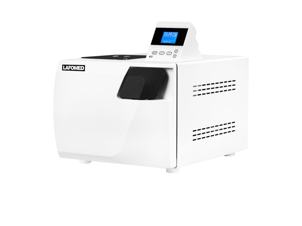 Je to kompaktné zariadenie, ktoré kombinuje8 litrov autokláv so zabudovanou tepelnou tlačiarňou. má LCD displej a Port USB, ktorý umožňuje pripojiť dátový nosič na uloženie výsledkov cyklu. Má10 plne automatických programov; 7 sterilizačných programov, 2 testovacie programy a program čistenia autoklávu. Okrem toho má aj funkcia užívateľského programu, čo umožňuje úplnú voľnosť pri výbere parametrov.Má intuitívne menu a používateľsky prívetivé rozhranie je v angličtine. Stránkafunkcie predhrievania a udržiavania tepla sa ukáže ako veľmi užitočný, najmä keď potrebujete vykonať viac programov a nechcete čakať, kým sa zariadenie zahreje pri spustení každého programu. Autokláv Lafomed Compact Line sa vyznačuje dostupnosťou rýchle sterilizačné programy s možnosťou regulácie času sušenia. Najkratší sterilizačný program vrátane sušenia trvá len 7 minút. Prístroj má zabudovanú nádrž na čistú (destilovanú) vodu, ktorá sa používa na sterilizáciu, ako aj nádrž na použitú vodu s možnosťou vypúšťania v prednej časti prístroja. Systém autodiagnostiky účinne chráni pred poškodením a zachováva životnosť zariadenia. Dodatočnú bezpečnosť poskytuje systém dvojitého uzamykania dverí. Od ostatných autoklávov Lafomed sa odlišuje tým, že neobvykle veľká kapacita nádrží na čistú a použitú vodu - až 2,5 litra! Vďaka tomu nebudete musieť často dopĺňať a vypúšťať vodu.