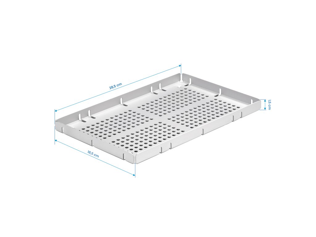 Zásobník je vyrobený z vysokokvalitnej nehrdzavejúcej oceleurčené na použitie v 3-litrových autoklávoch Lafomed. Umožňuje pohodlné usporiadanie vreciek alebo nástrojov počas procesu sterilizácie.Odolnosť voči vysokým teplotám a vlhkosti. Ideálne na každodenné použitie v kozmetických salónoch, podiatrických ambulanciách, zubných ordináciách a zdravotníckych zariadeniach.