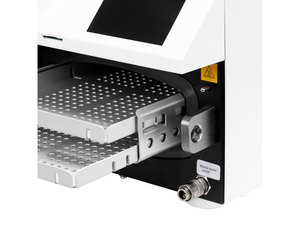 Držiak určený na usporiadanie zásobníkov v 3-litrovej komore autoklávu. Je vyrobený z odolného kovu a zaručujestabilné umiestnenie zásobníkov a optimálnu cirkuláciu pary počas sterilizačného procesu. Je presne prispôsobená zariadeniam Lafomed auľahčuje bezpečné usporiadanie nástrojov a príslušenstva.
