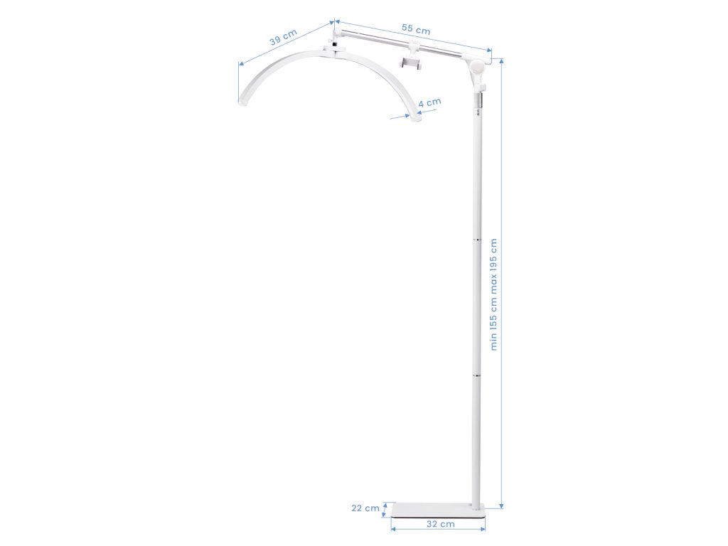 Statív sa dá ľahko nastaviť v rozsahu 155-195 cm pomocou poistnej skrutky umiestnenej na ramene. To umožňuje na presné nastavenie polohy hlavy podľa individuálnych potrieb používateľa a rôzne typy kozmetických kresiel, postelí a ošetrovacích stolov,zabezpečenie optimálneho osvetlenia pracovného priestoru. Farbu a intenzitu svetla možno nastaviťpoužívanie dvoch diaľkových ovládačov - jeden, umiestnený na kábli, je vždy po ruke a druhý umožňuje diaľkové ovládanie nastavení. Okrem toho vďakazabudovaný magnet, možno ho pohodlne pripevniť na vybrané miesto.
