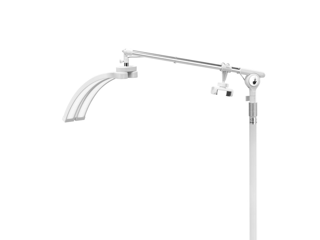 Charakteristický tvar svietidlahlava je nielen moderným dizajnom, ale predovšetkým funkčným riešením. Široký oblúkový panel rozdelený na dve častinaplnené 308 LED diódami, poskytuje rovnomerné osvetlenie ošetrovanej oblasti bez tieňov, čím zvyšuje pracovný komfort. Je tiež ideálne na fotografovanie účinkov ošetrenia,ich presné vystavenie. Povrch panelu účinne rozptyľuje svetlo, čím minimalizuje oslňujúci efekt. Vďaka možnosť nastavenia farby a intenzity svetla, lampa poskytuje vynikajúcu reprodukciu videných farieb aminimalizuje únavu očí, a to aj počas dlhodobého používania. Okrem toho, otočná hlava a široko nastaviteľný rámumožňujú presné nastavenie uhla dopadu svetla. Navyše,oba panely možno nastaviť nezávisle v rozsahu 90 stupňov, čo poskytuje ešte väčšiu voľnosť pri prispôsobovaní osvetlenia individuálnym potrebám.