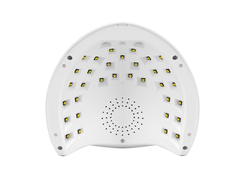 36 presne umiestnených LED diód zabezpečuje dokonalé vytvrdnutie gélov a hybridných leštiacich prostriedkov, čím sa eliminuje riziko tzv. mŕtvej zóny. Stránkauzavretý dizajn, ktorá sa nazýva kabína, umožňuje presnejšie a rýchlejšie vytvrdenie nechtového dizajnu. Vďaka technológii Dual LED,diódy vyžarujú svetlo dvoch vlnových dĺžok, čím sa znižuje únava očí a predlžuje dosah zariadenia. Zrkadlová spodná časť rovnomerne odráža svetlo, čourýchľuje a optimalizuje proces vytvrdzovania na celom povrchu nechtu. Tieto riešenia uľahčujú správne vytvrdzovanie aj tých najnáročnejších produktov a umožňujú dosiahnuť aj ťažšie prístupné miesta nechtovej platničky.