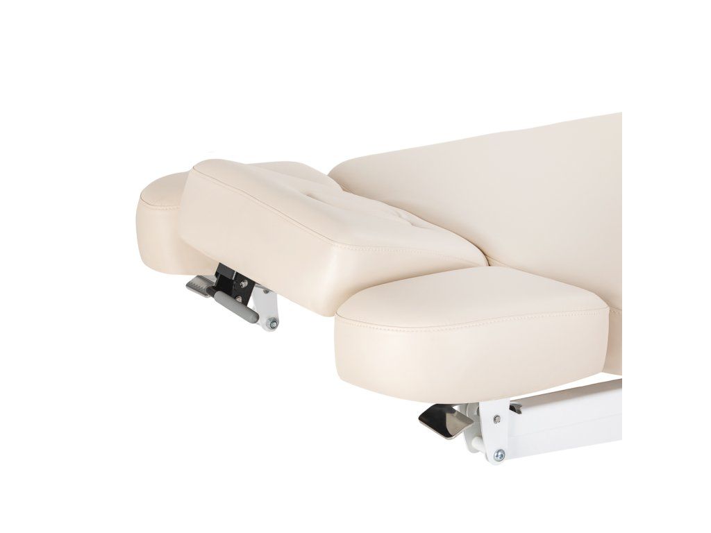 Profilovaný povrch ležadla podporuje prirodzenú a pohodlnú polohu tela,poskytuje stabilnú a pohodlnú oporu. Primeraná šírka a pružný matrac zabezpečujú pohodlie aj počas dlhých kozmetických procedúr a masáží. Väčšie pohodlie znamenálepšie skúsenosti s liečbou a vyšší štandard služieb v salóne. Prídavná lakťová opierkazvyšuje pohodlie pri ležaní na bruchu, čím sa zmierňuje tlak na hornú časť tela a podporuje hlboké uvoľnenie. Otvorená polička so zabudovanou priechodkou na kábleuľahčuje organizáciu príslušenstva a kozmetiky, udržiavanie poriadku na pracovisku.
