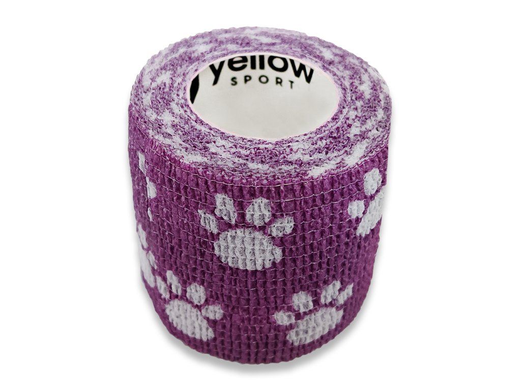 Vlastnosti: súdržný obväz fialový s bielymi labkami Jednovrstvový pás z netkanej textílie Súdržný obväz - priľne k sebe (netreba používať spony), nelepí sa na kožu, vlasy ani zvieracie chlpy Ľahko sa trhá v rukách Zabalené vo fólii, ktorá chráni pred nečistotami, odvíjaním a poškodením yellowBAND prepúšťa vzduch, pokožka pod ním dýcha Vytvára odolný, vodeodolný obväz, ktorý funguje dobre za všetkých podmienok Bez latexu a nedráždi
