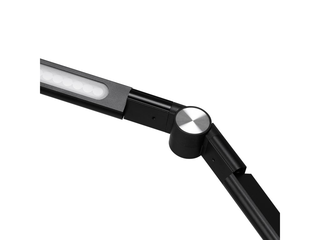 S jeho jednoduchá hliníková forma s čiernym matným povrchom, lampazapôsobí futuristickým vzhľadom, ktoré dokonale zapadnú do takmer každého interiéru. Vďaka rukoväti pripomínajúcej zverák ho možno jednoduchá a stabilná montáž na stôl, a 135 cm vysoký statív zabezpečuje primeranú funkčnosť. Hladký povrch lampy umožňujevýnimočne jednoduché udržiavanie čistoty, čím sa eliminujú problémy s ťažko prístupnými prvkami.
