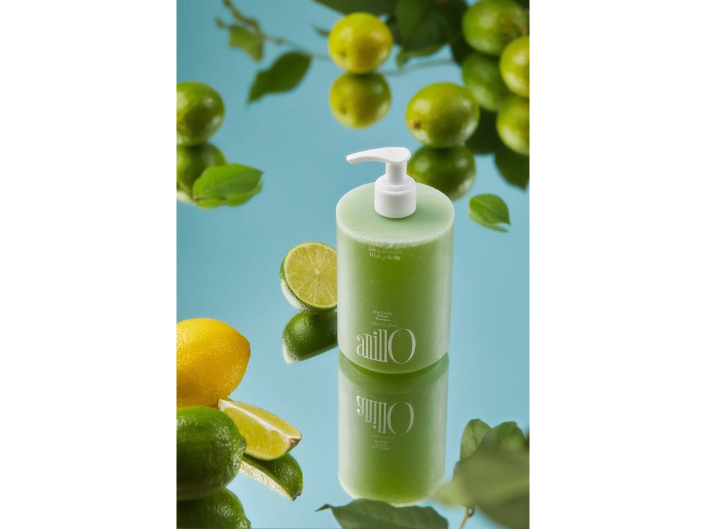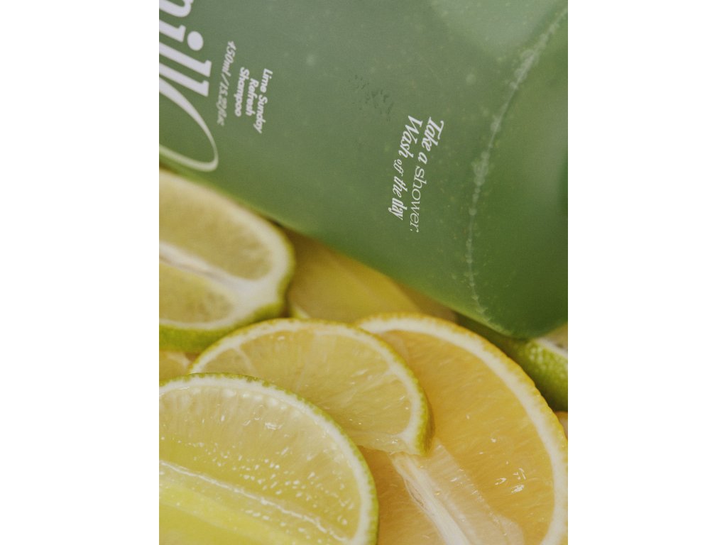 Osviežujúci šampón s limetkovou gélovou textúrou a mandľovými exfoliačnými časticami