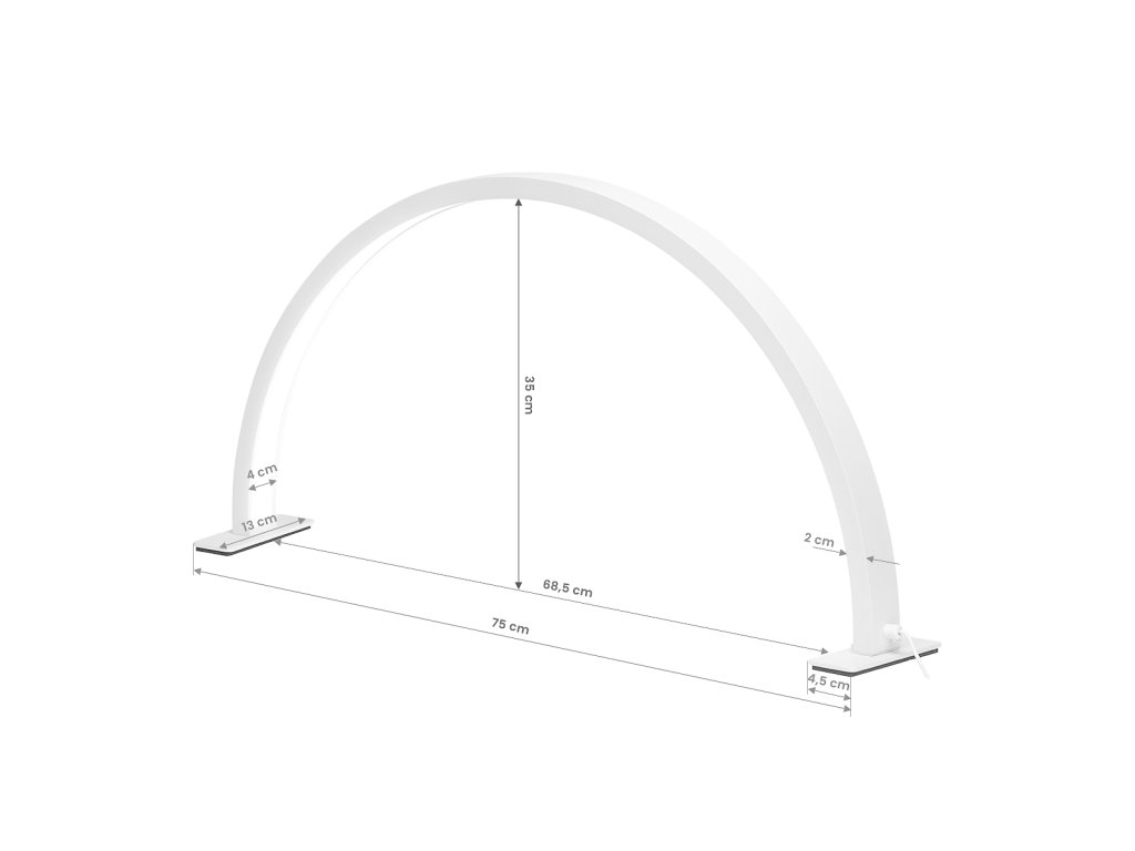 Jedinečný tvar a minimalistický dizajn v klasickom bielom odtieni robí manikúrovú lampu Glow Arche III pôsobivou v každom interiéri. Výrazný vzhľad a oblúkovitý tvar jej dodávajúnetradičný charaktera možnosť nastavenia teploty farieb zefektívňuje prácu. Prvky základne pokryté protišmykovým povrchomumožňujú pohodlné a stabilné umiestnenie svietidla na pracovisku. Vďaka použitým plastovým a kovovým prvkom je zariadenieodolné a ľahko sa udržiavajú v čistote.