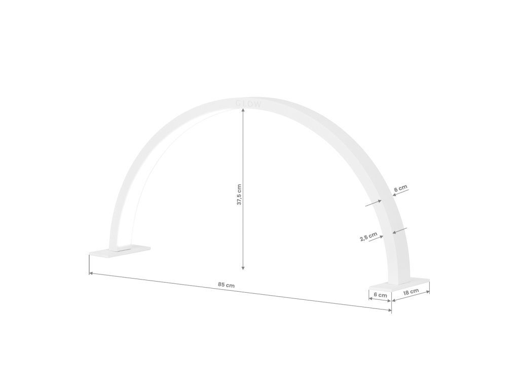 Ošetrovacia lampa Glow Arche II s jedinečným oblúkovým tvarom poskytuje vynikajúce osvetlenie ošetrovanej oblasti počas služieb vyžadujúcich presnosť, ako je napríklad úprava nechtov. Výborne sa uplatní v špecializovaných ordináciách, kde správne svetlo výrazne ovplyvňuje kvalitu vykonávaných ošetrení. To bude dôležité najmä počas manikérskych služieb, ako aj kozmetických ošetrení, predlžovania rias, tetovania alebo permanentného make-upu. Užitočné bude aj pri fotografovaní alebo nahrávaní videí účinkov služieb.