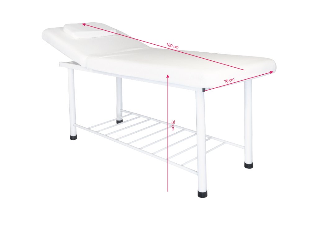 Základné masážne lôžko 812 je model s mimoriadne jednoduchou a stabilnou konštrukciou. na prepravu môžete nohy pohovky zložiť alebo rozložiť. Pohovka je vyrobená z ocele s práškovým nástrekom a nohy sú pochrómované. Vrchná časť je potiahnutá kvalitnou bielou koženkou.