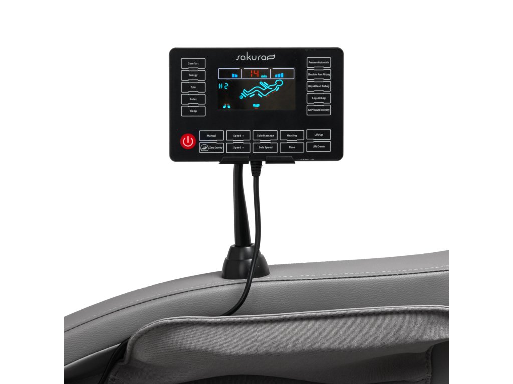 S priehľadný ovládací panel - ktorý možno umiestniť na rukoväť umiestnenú na pravej opierke alebo držať v rukách - používanie kresla je jednoduché a príjemné. Obsluhu zariadenia môžete sledovať naprehľadný displej LCD. Jasne sa zobrazujú práve masírované oblasti tela, intenzita ošetrenia, čas služby a zvolený program. Panel umožňuje voľne upravovať nastavenia kresla a masážnych funkcií, ako aj nastaviť trvanie liečby, ktorémôže trvať 5, 10, 15, 20, 25 alebo 30 minút.