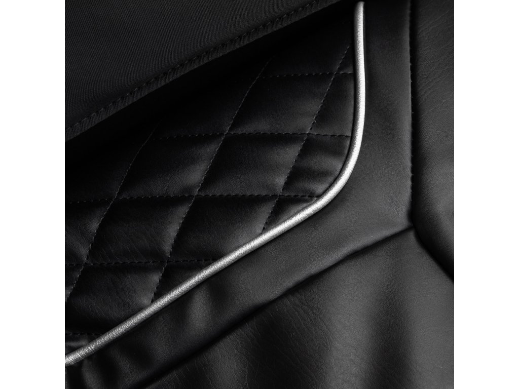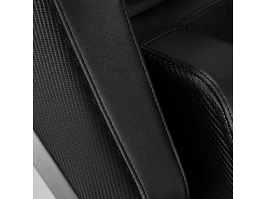 Mäkká imitácia kože v odtieňoch čiernejposkytuje výnimočný komfort používania a jednoduché čistenie. Tento materiál je nielen estetický, ale ajodolné voči vlhkosti, čo zvyšuje jeho funkčnosť. Vonkajšie prvky v striebornej farbe v kombinácii so štrukturálnou úpravou v čiernych tónoch dodávajú stoličkemoderný, štýlový vzhľad. Vďaka kompaktným tvarom a tlmeným farbám sa model hodíharmonicky zapadajú do rôznych interiérov. Sakura Prime 108 je vynikajúcou voľboupre ľudí, ktorí hľadajú každodennú relaxáciu - najmä po intenzívnom dni alebo náročnej fyzickej námahe.